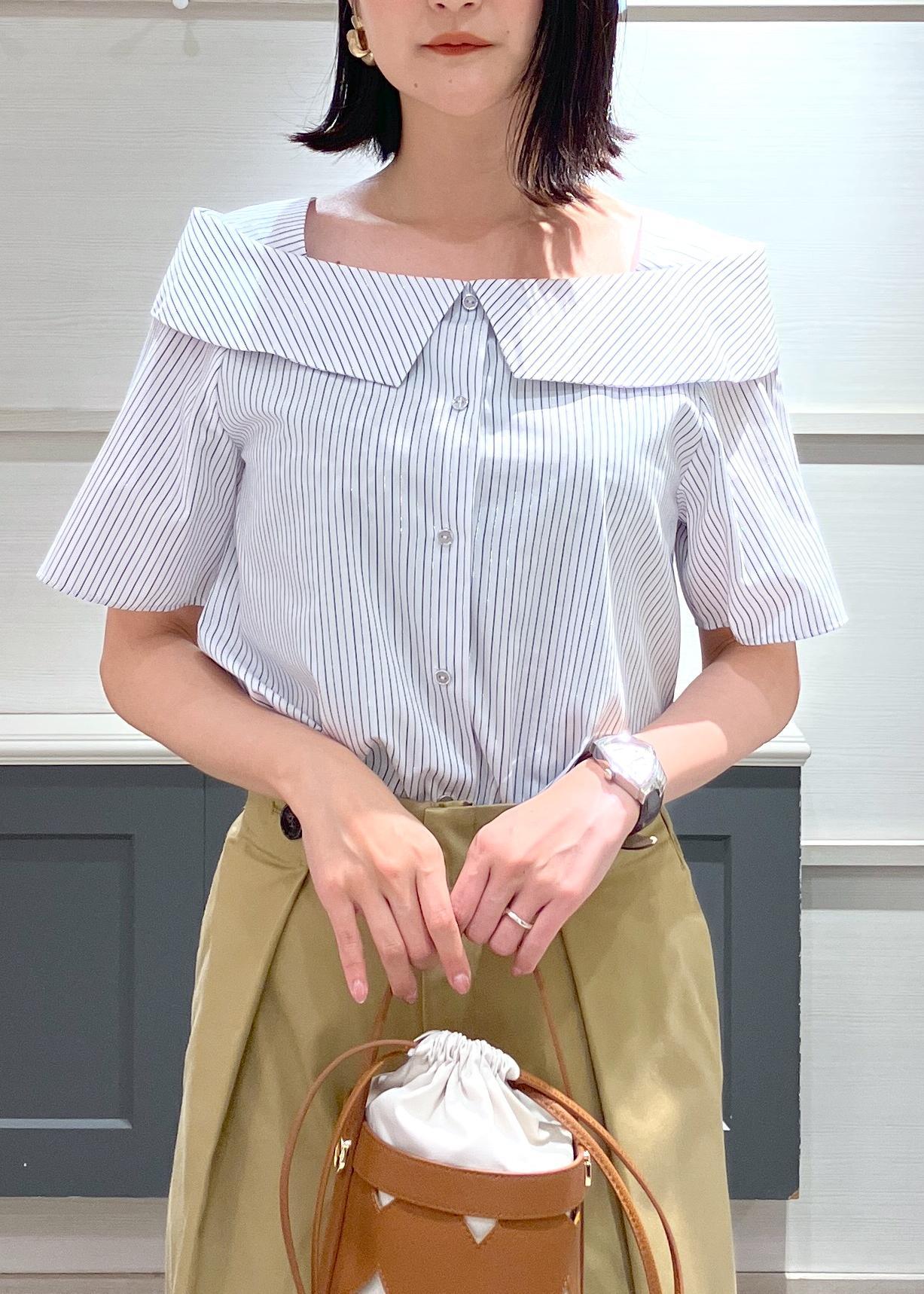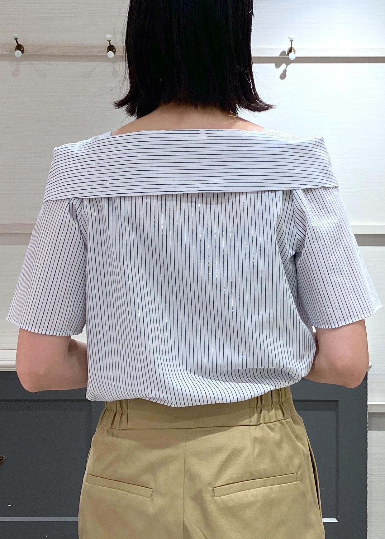 VIS【新色追加】【防シワ】ラメミックスオフショルダー風ストライプシャツホワイト系 / F¥5,489レビュー骨格ストレートで肩周りが気になる体型ですが、