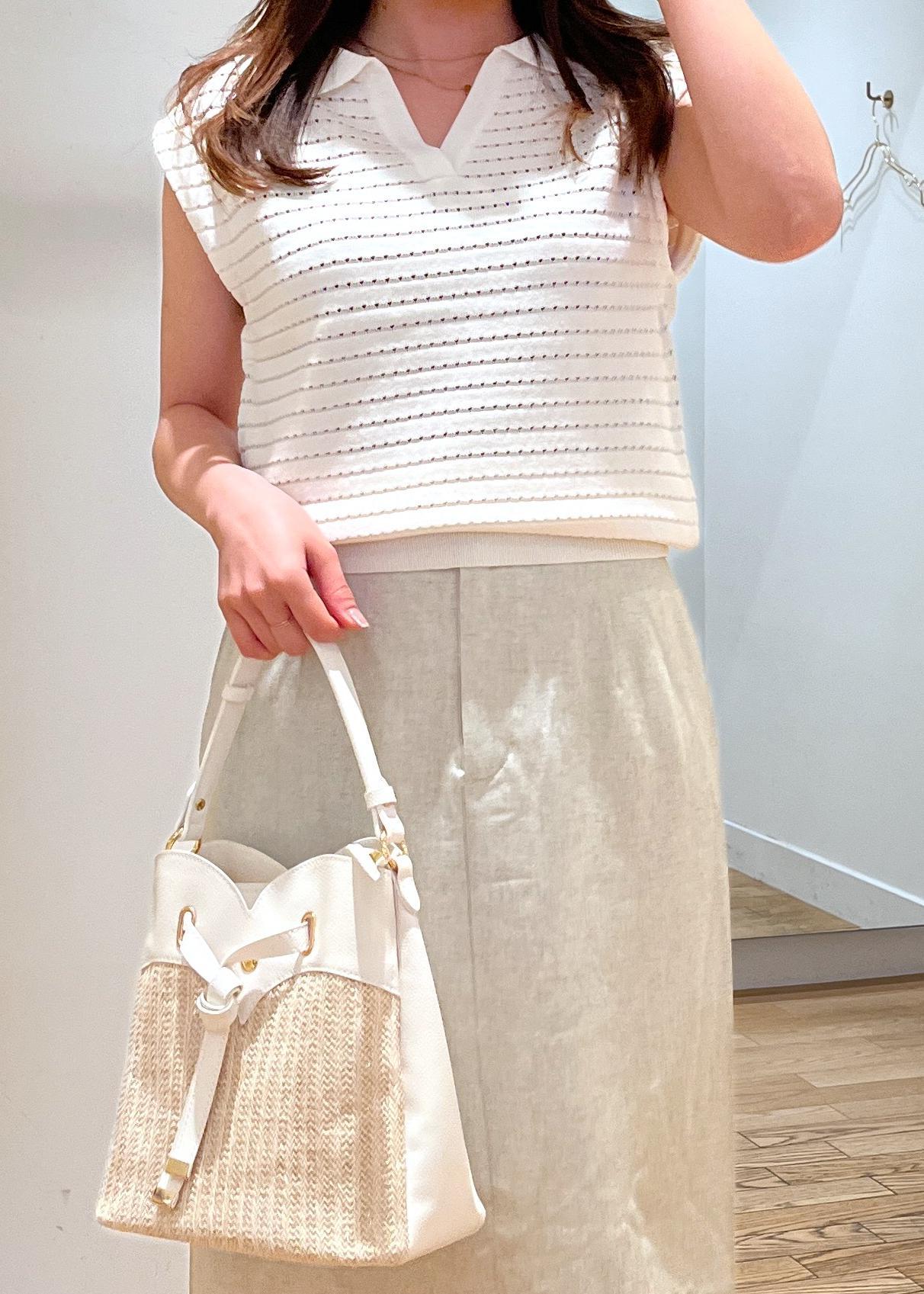 VIS【2WAY】ハートカットカゴバッグホワイト系 / F¥6,919レビュー長財布、折りたたみ傘、350mlペットボトル、スマホ、ポーチなとが入ります。