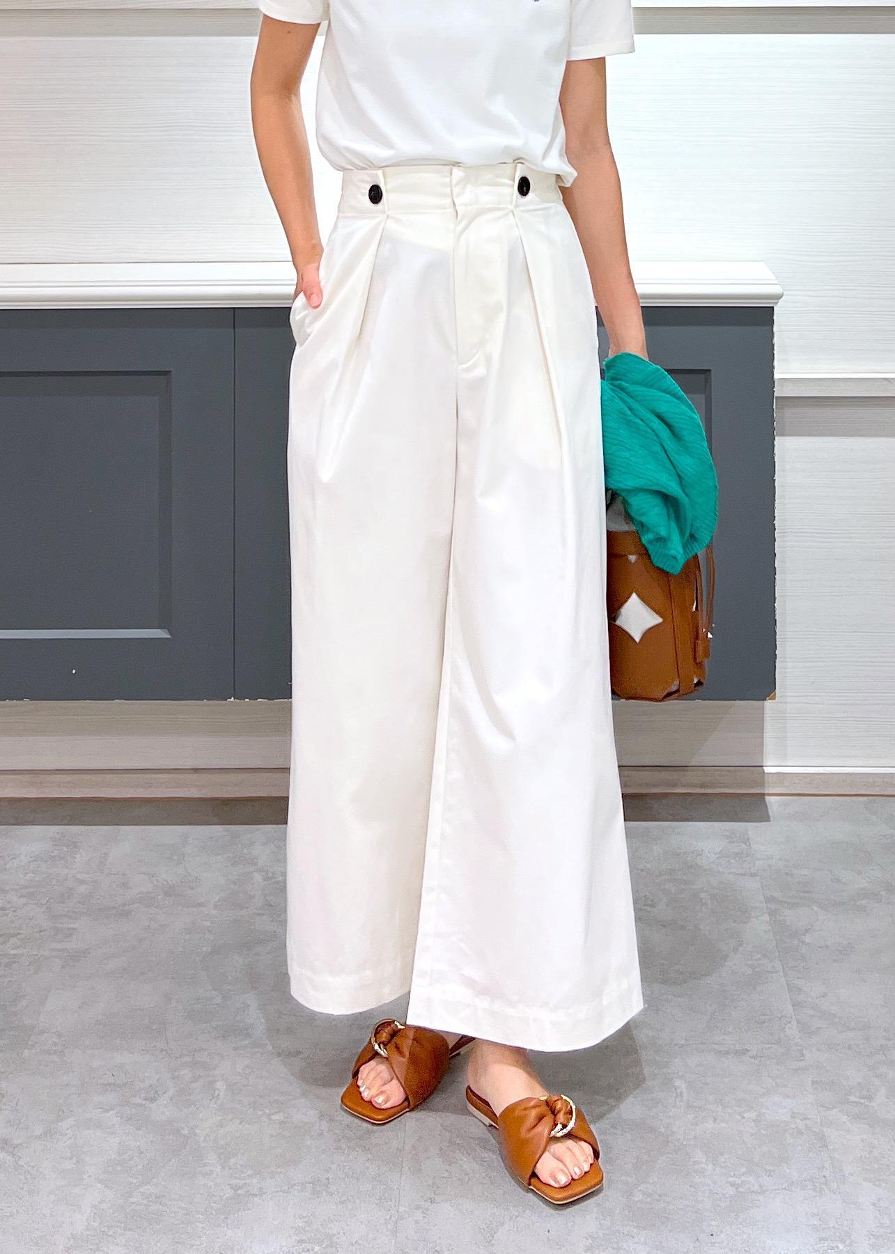 ハイウエストで腰周りをすっきり見せてくれるバギーシルエットで、ハリ感があり、脚長効果絶大です! -