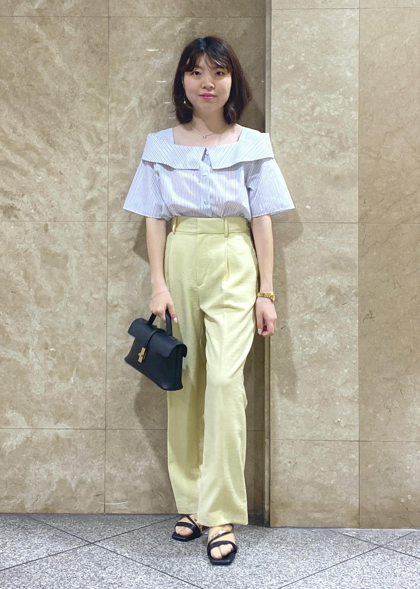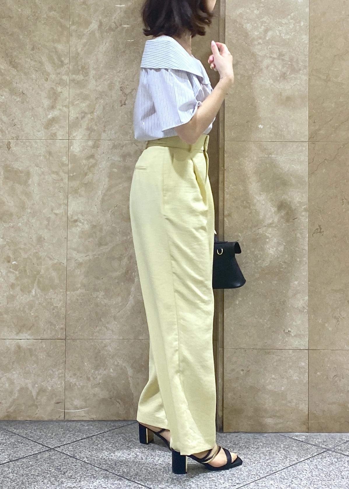 VIS【美easy】ワンタックワイドスラックスパンツ/洗えるイエロー系 / SS¥5,489レビュー150センチでSSサイズを着用し、くるぶしにかかる丈感でした!