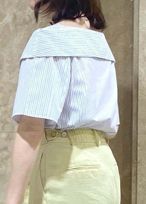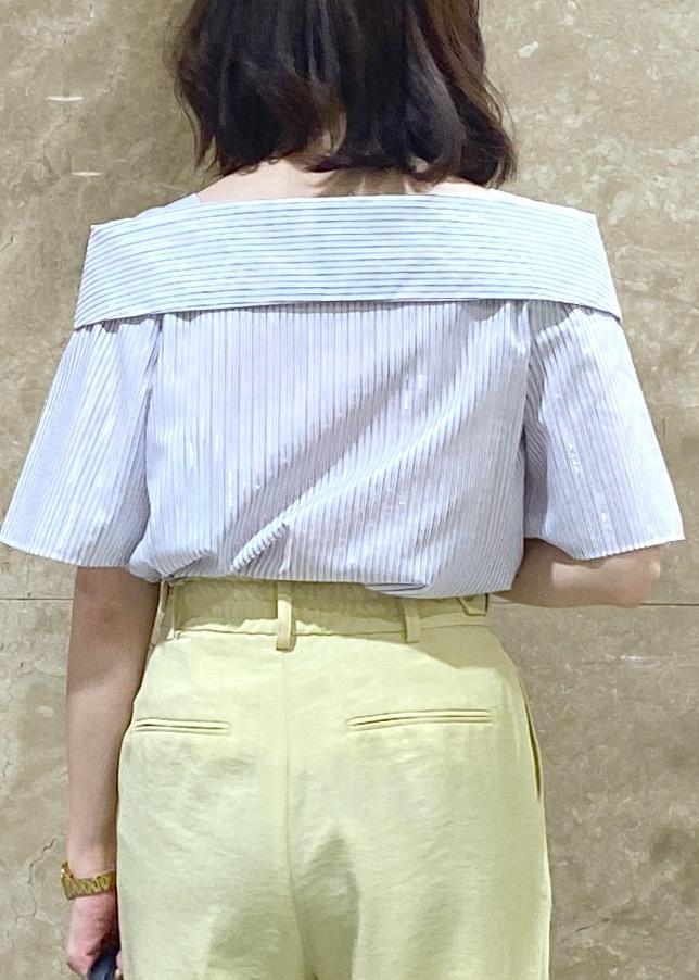 VIS【新色追加】【防シワ】ラメミックスオフショルダー風ストライプシャツホワイト系 / F¥5,489レビュー150cmで腰にかかる丈感でした!