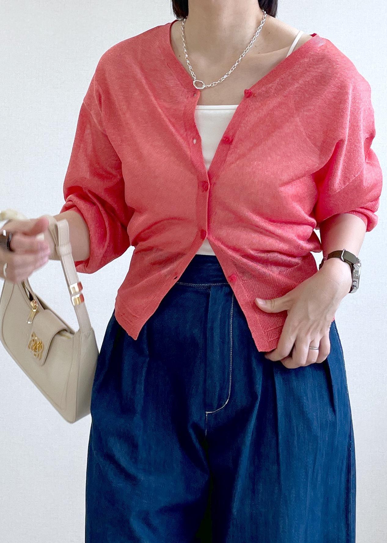 アウトレットVIS【前後2WAY】ハート釦シアーカーディガンレッド系 / F¥3,293レビューキラッとした素材感のシアーカーディガンです。
