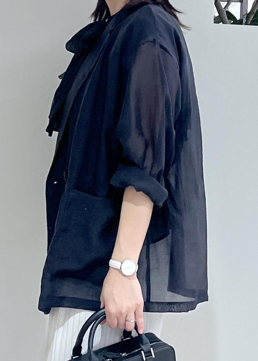 アウトレットVISシアーリラックスジャケットブラック / F¥4,151レビューブラックの透けるジャケットです。ふんわりと軽い着心地でサラッと羽織るのに便利です。
