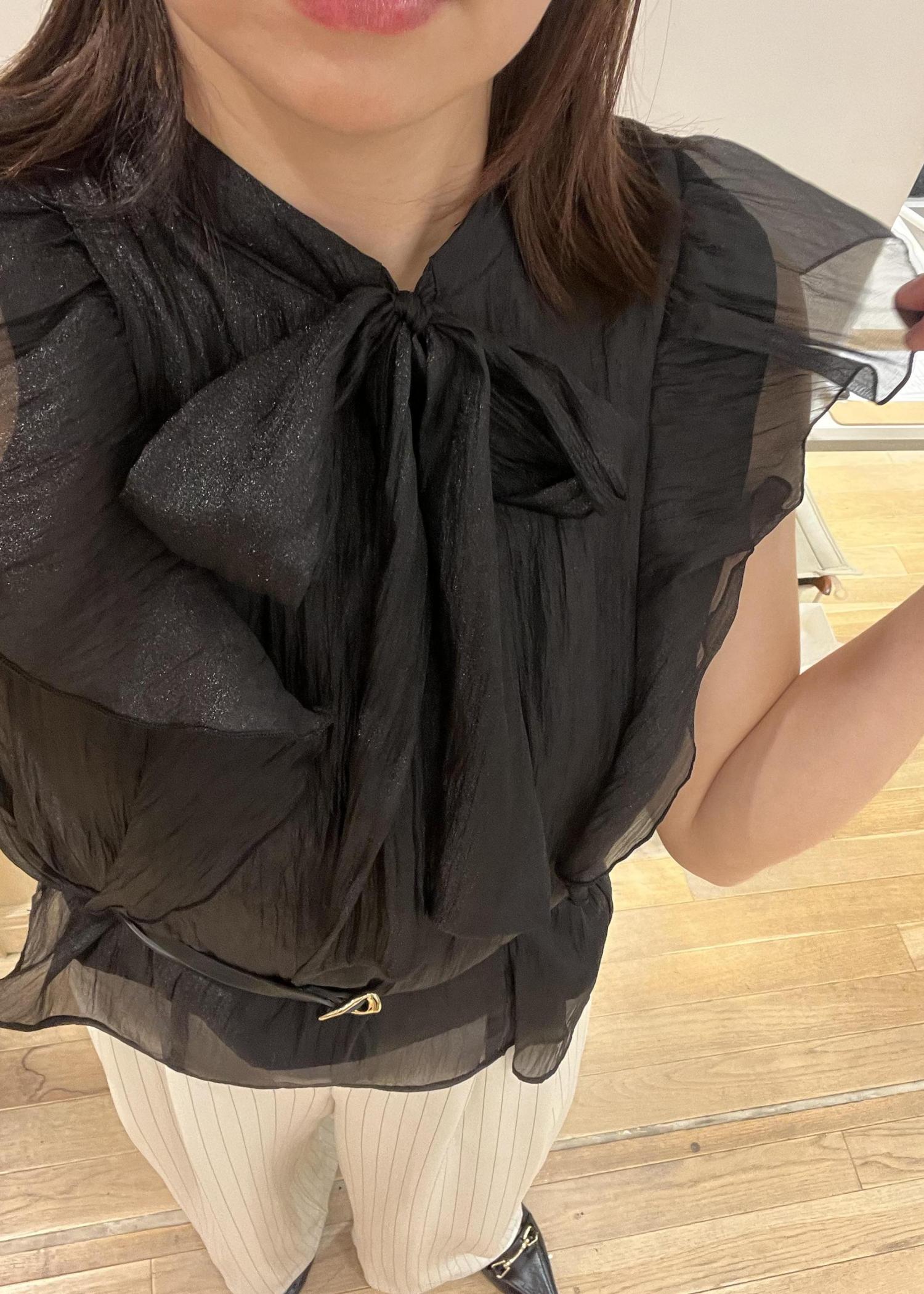 VIS【店頭人気】主役級!華やぎシアーシャイニーボウタイフリルブラウス【前後2WAY】【洗える】ブラック / F¥5,489レビュー2way仕様で雰囲気を変えることが出来るトップスです。艶のある生地とフリルのデザインが可愛らしいトップスです。薄い生地なので上にジャケットを羽織ってきてもゴワつかず、着やすいです。黒は甘すぎず大人コーデにもバッチリです。