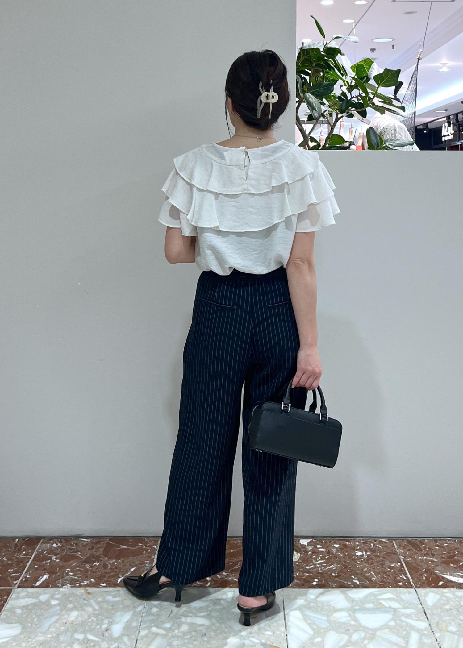 アウトレットVISフリルティアードブラウスオフホワイト / F¥4,391レビュー首周りのシャーリングがヒラヒラして動きのあるトップスです。サラサラした生地で蒸し暑い時期も涼しげに着ることが出来ます。半袖くらいまでくるので気になる二の腕もカバー出来ます。オフィスカジュアルでも着られるくらいの着回しが出来るアイテムです。