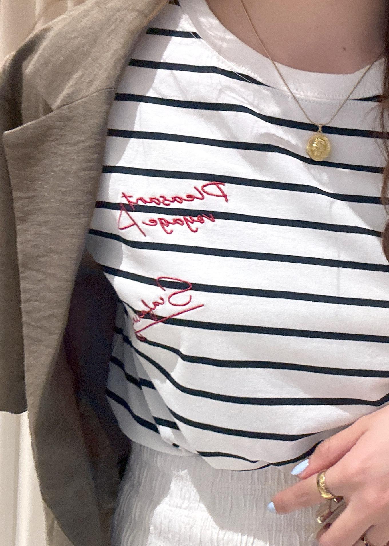 美easyのハーフスリーブジャケットにボーダーで大人カジュアルに♪