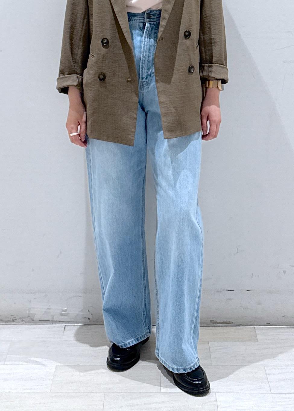 ハイウエストなので高めに着ていただき、足長効果抜群◎少し太めの形ですが、ストレートに落ちていくので骨格ストレートが得意なデニムです。
