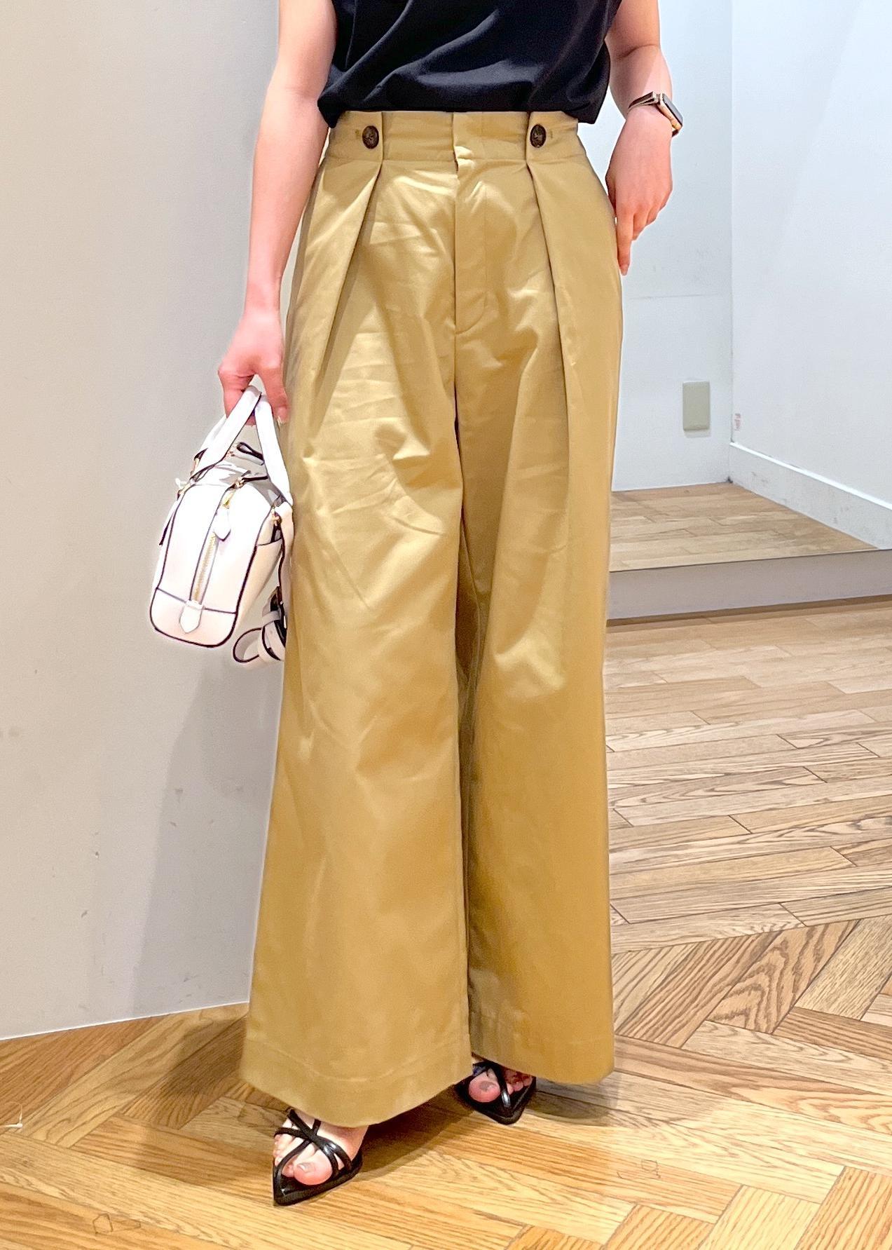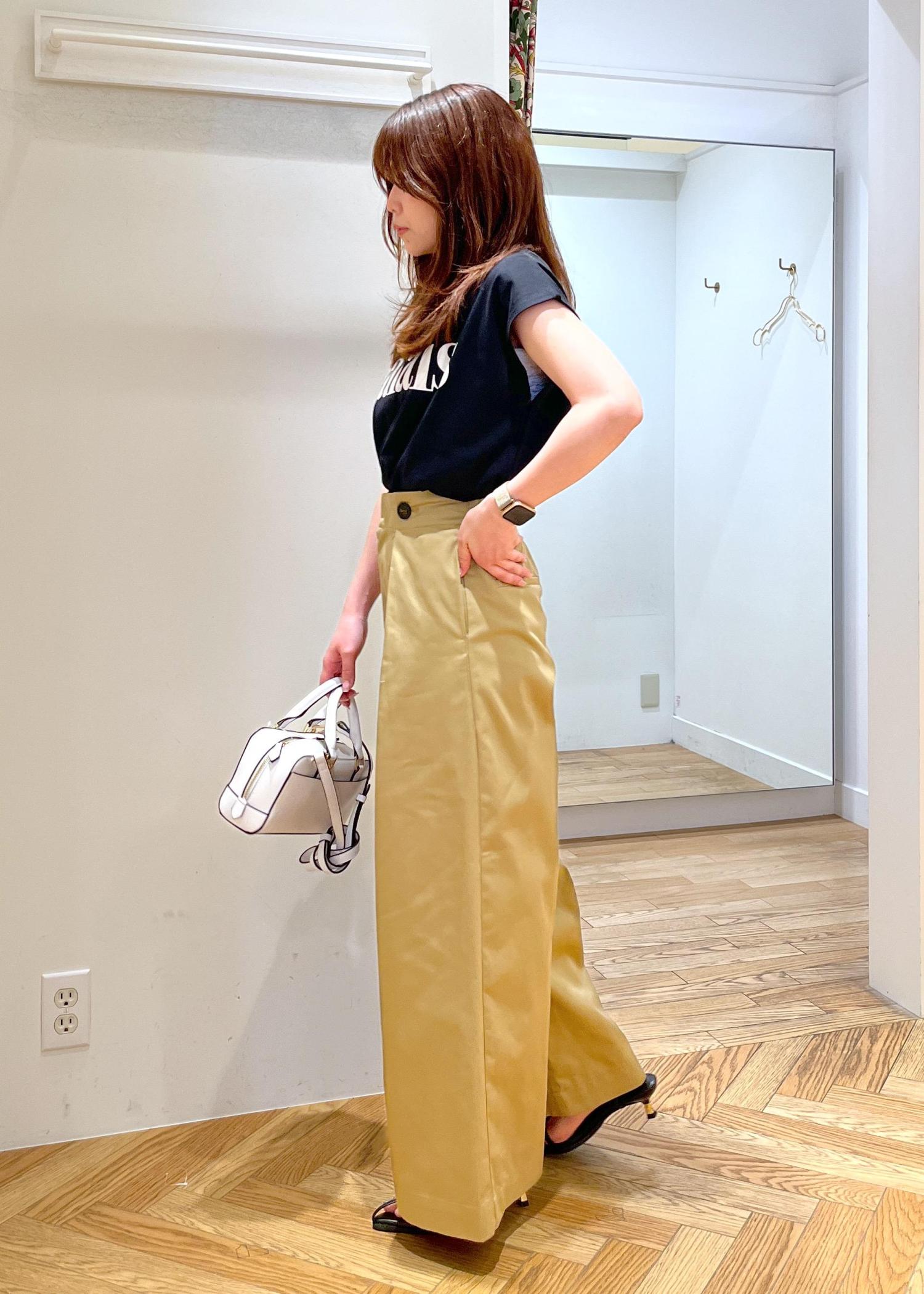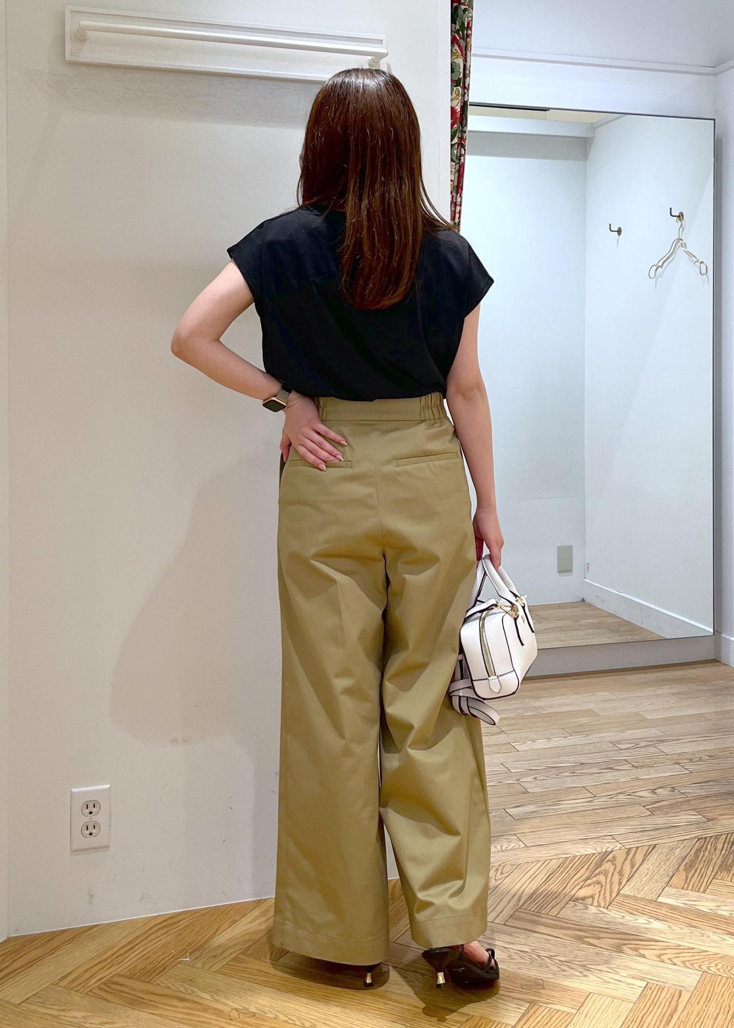 素材は張りがあるのでワイドシルエットがきれいにでます。