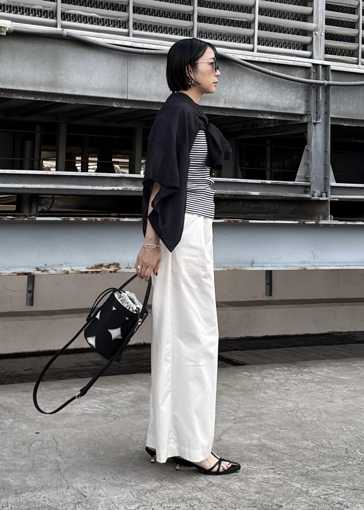 シアーのジャケットは羽織るだけではなく、タスキ巻きもできるくらい薄くて柔らかい素材で、色んな着こなしが出来そうです!