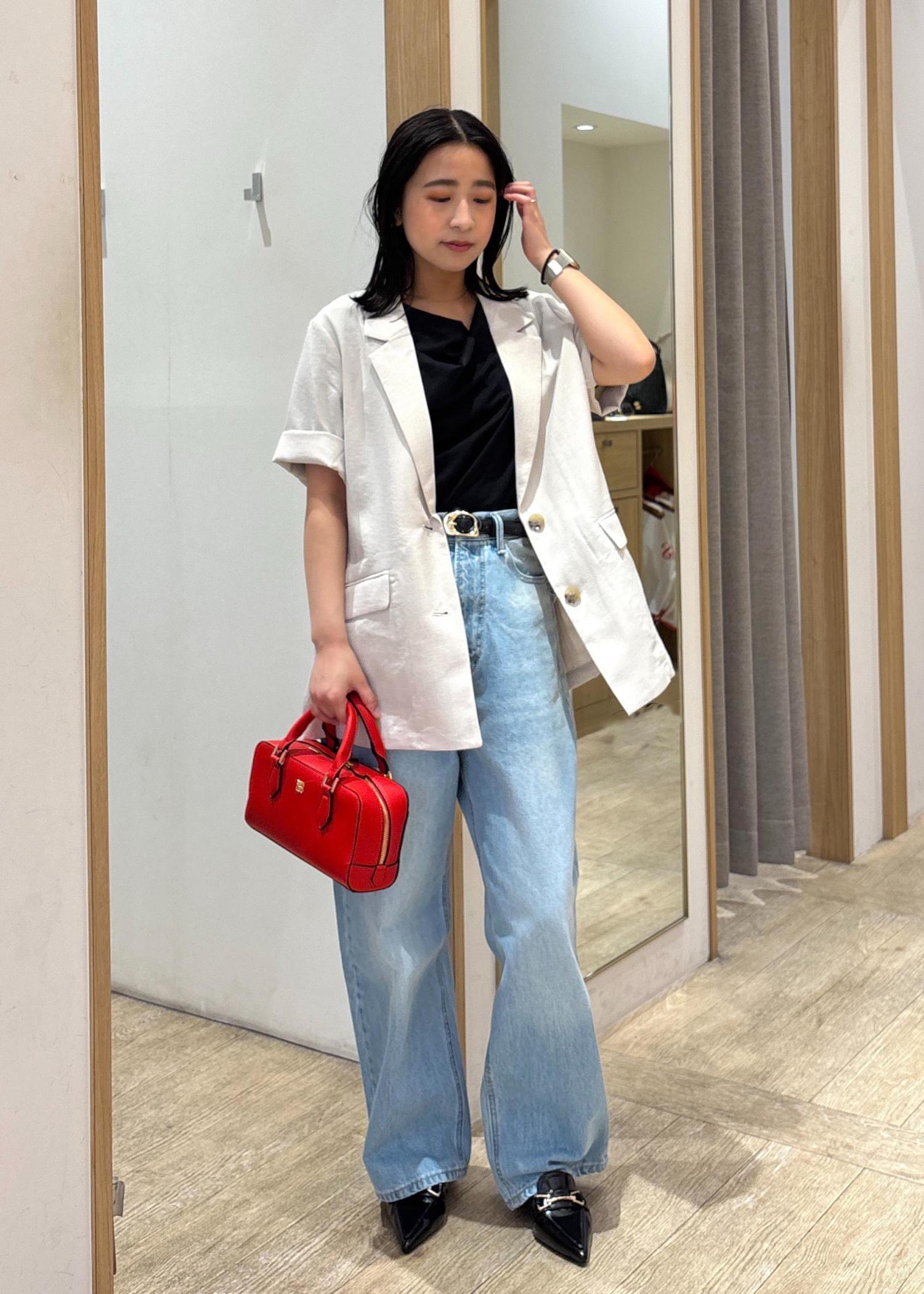 デニムはハイウエスト×ボリュームシルエットなので、トップスはコンパクトなものだと着膨れしにくくてウェーブにおすすめ☺︎