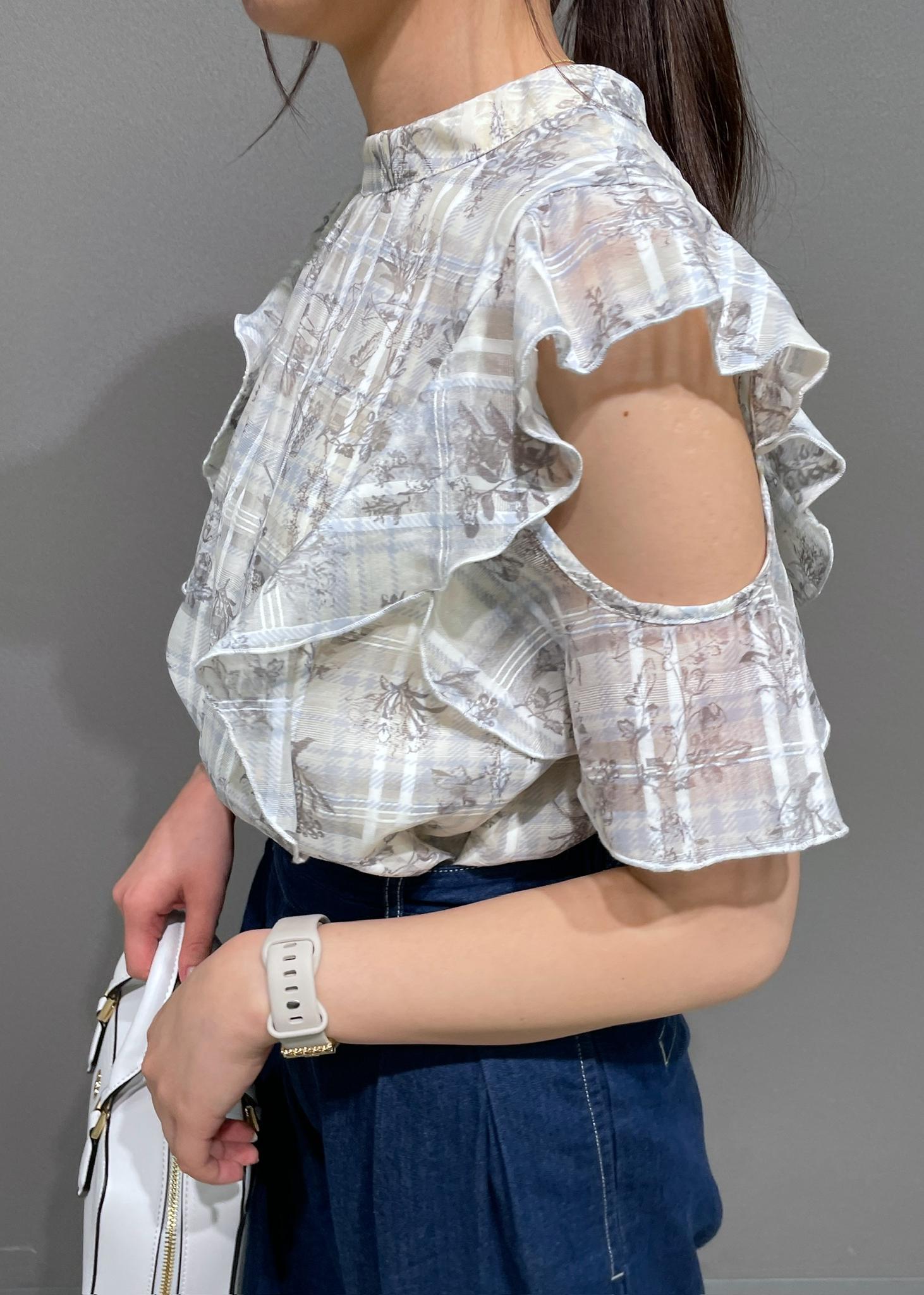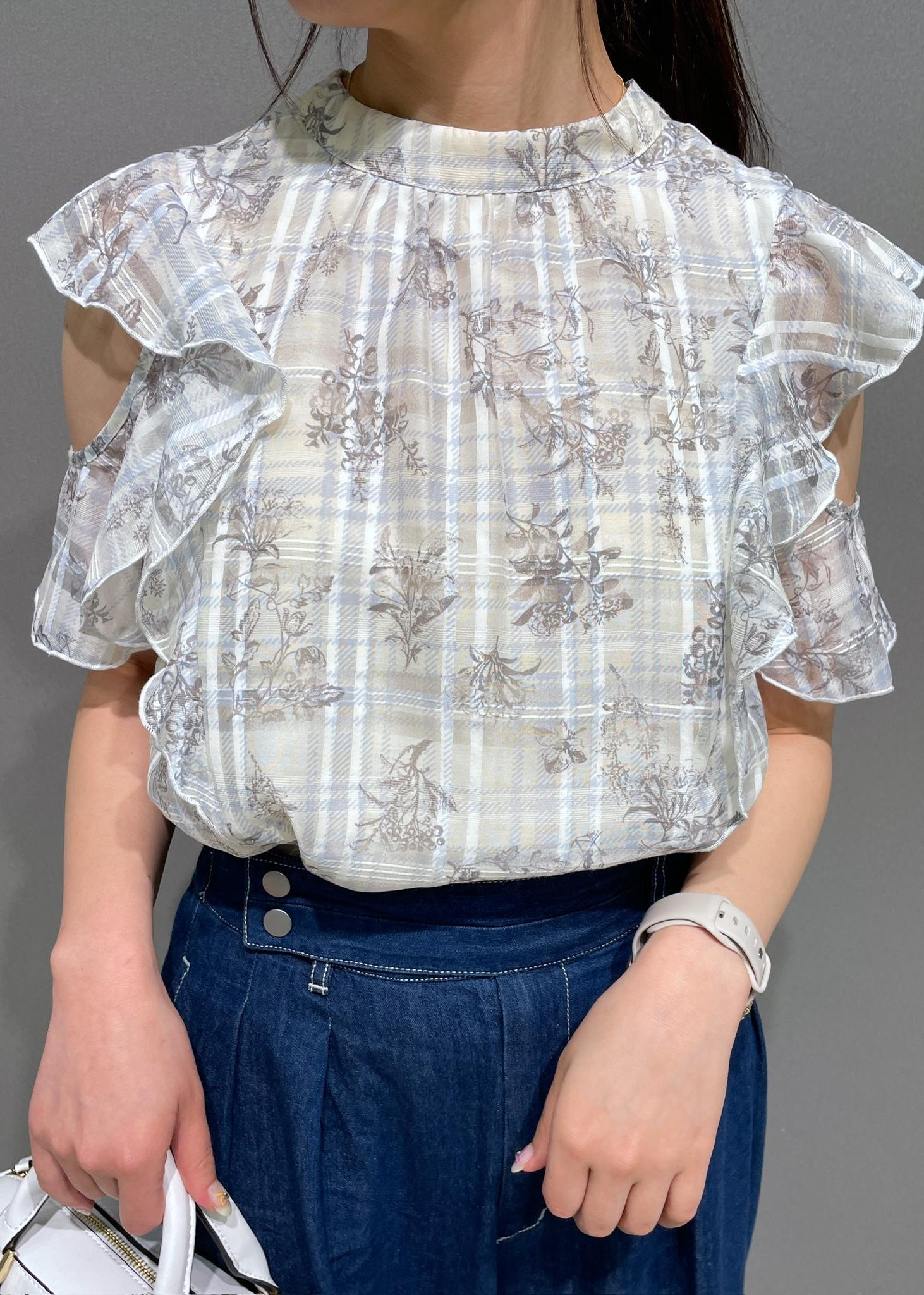 アウトレットVIS【洗える】2WAYショルダーシアーチェックブラウスベージュ系 / F¥4,391レビューノースリーブのブラウスですが、フリルのおかげで露出感が抑えられ、とても着やすいブラウスです♡