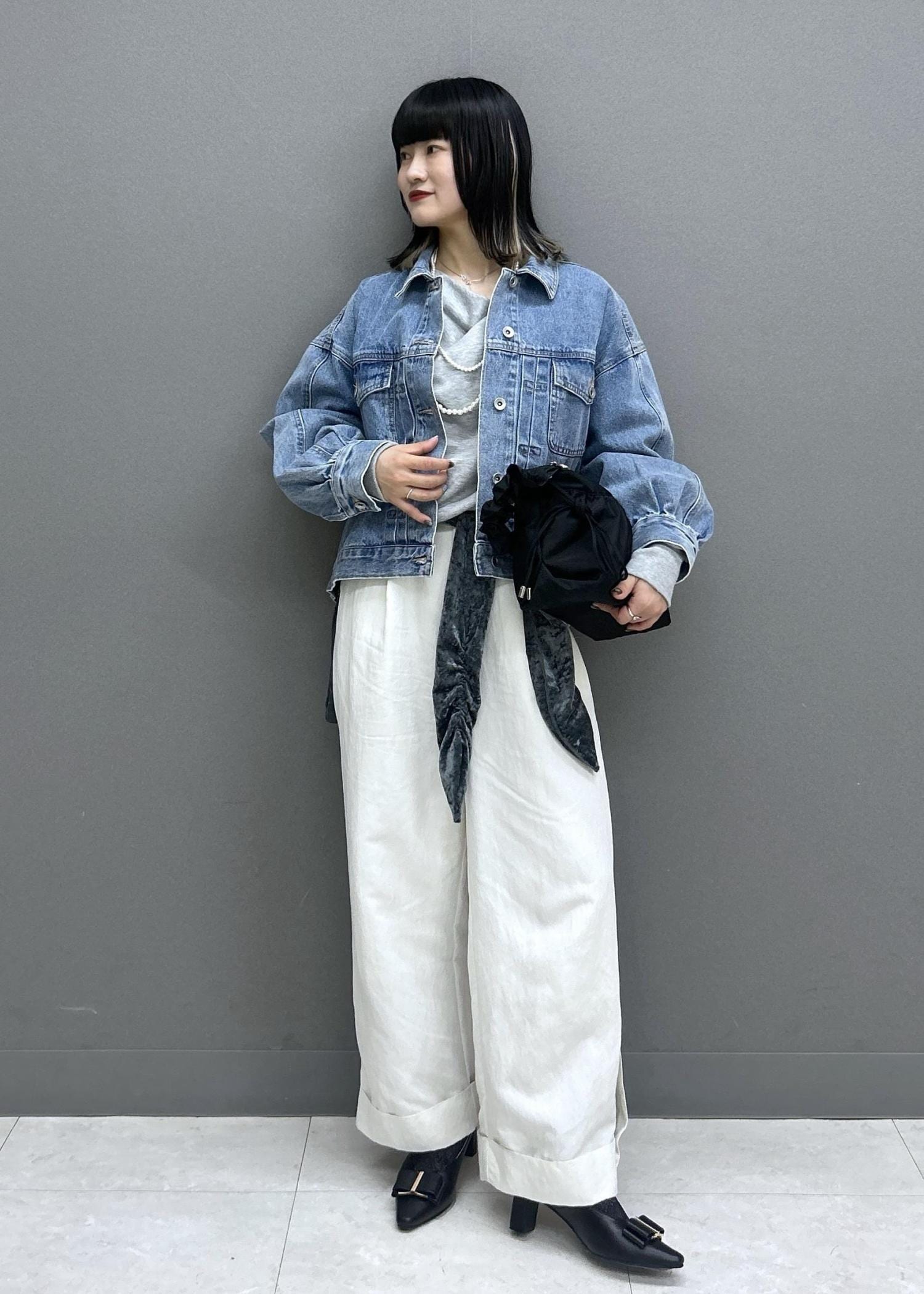 スカートやキレイめのパンツだけでなく、デニムとの合わせもかわいい万能アイテムです◎