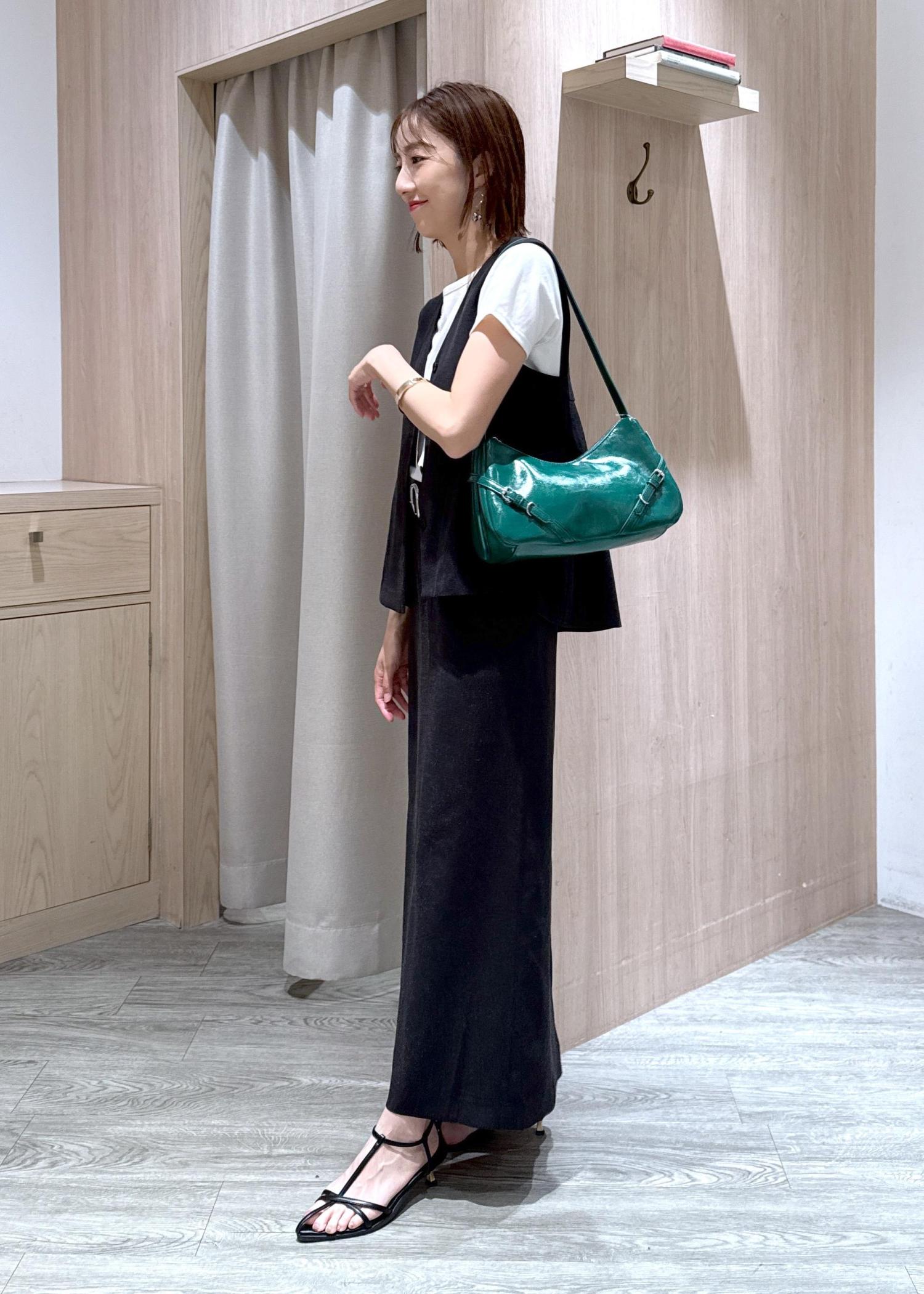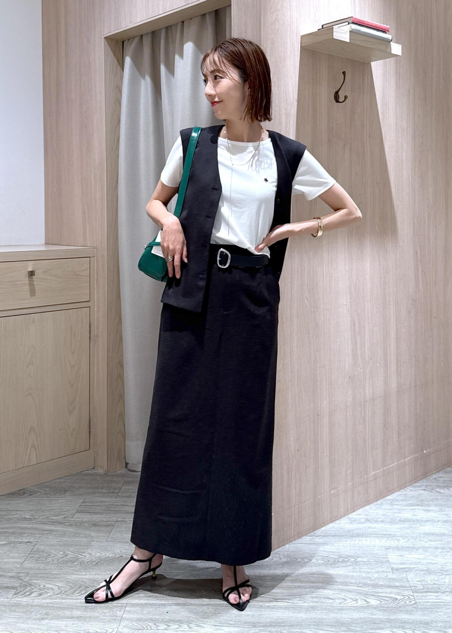 コンパクトサイズの白Tを合わせればオフィスカジュアルにも◎