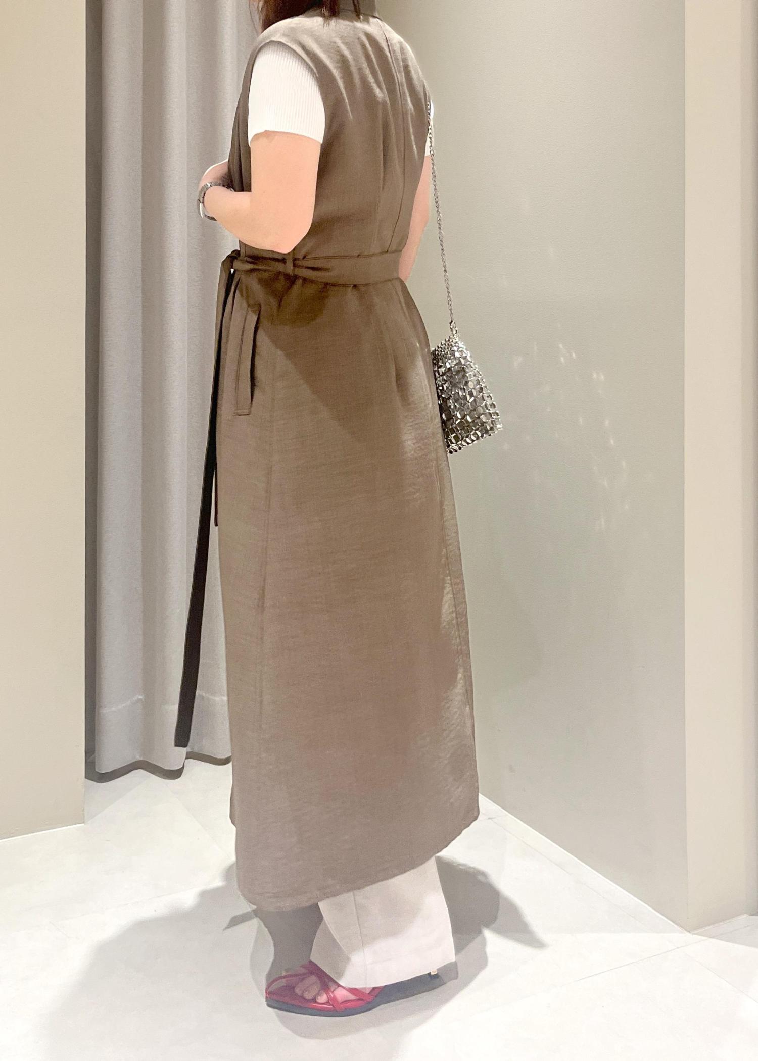 VIS【美easy】リネンライクジレワンピース【接触冷感/洗える】カーキ系 / F¥8,899レビューウエストが絞られたデザインでスタイルアップして見えるワンピースです。