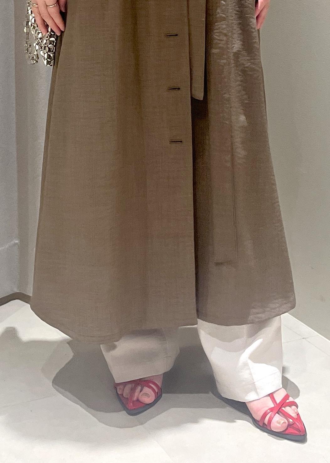 キナリは少し透け感があるので、ペチコート着用やパンツとのレイヤードスタイルがおすすめ。
