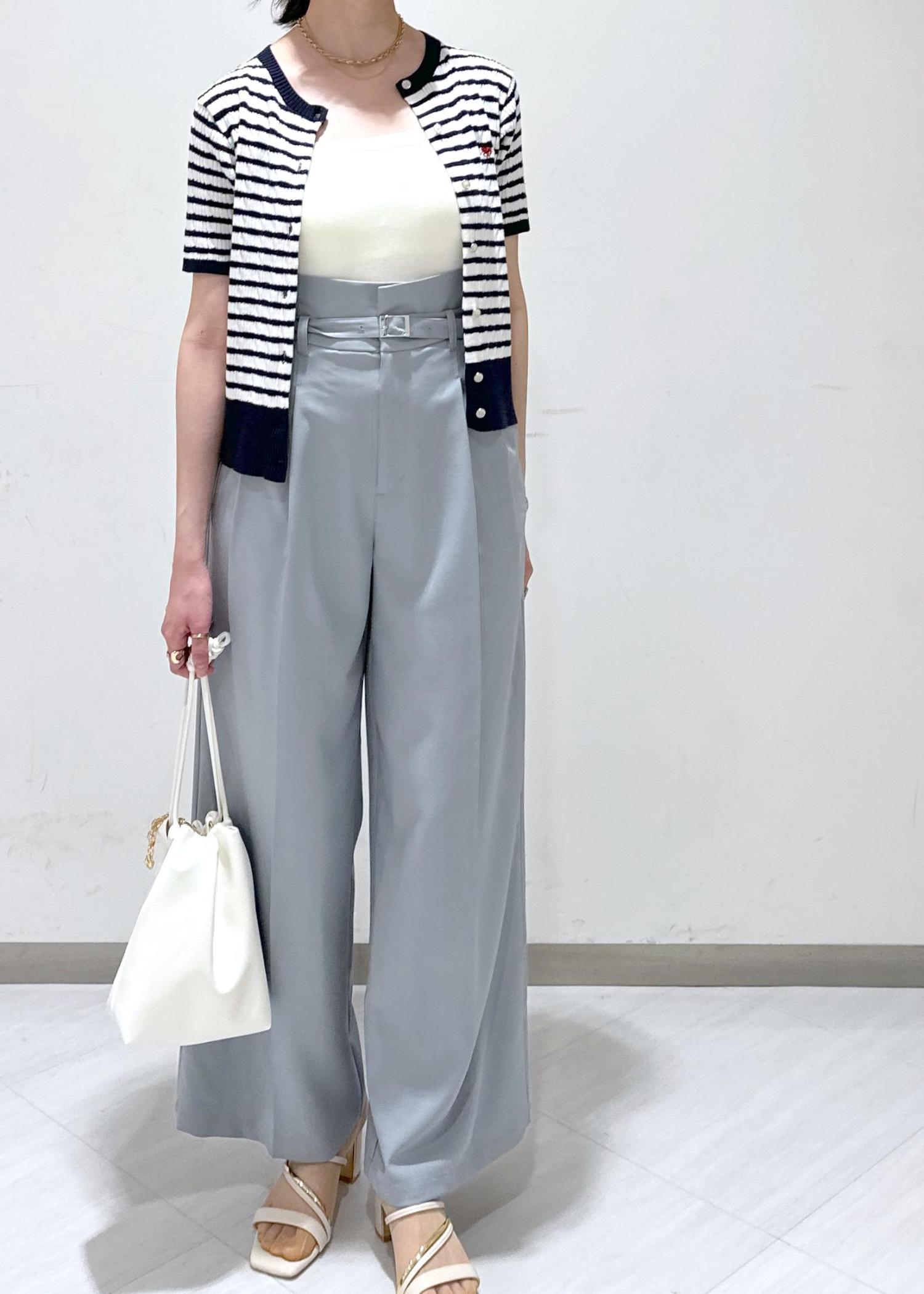 VIS【新色追加】【防シワ/接触冷感】ベルトディテールタックワイドスラックスパンツサックス / M¥6,589レビュー160cm Mサイズ着用しています。