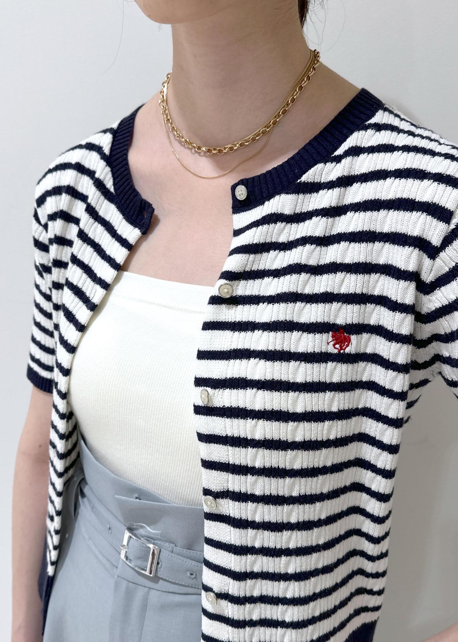 VIS【POLO BCS】VIS別注ハーフスリーブミニケーブルカーディガンホワイト系 / F¥6,600レビュー160cmで着丈が腰あたりです