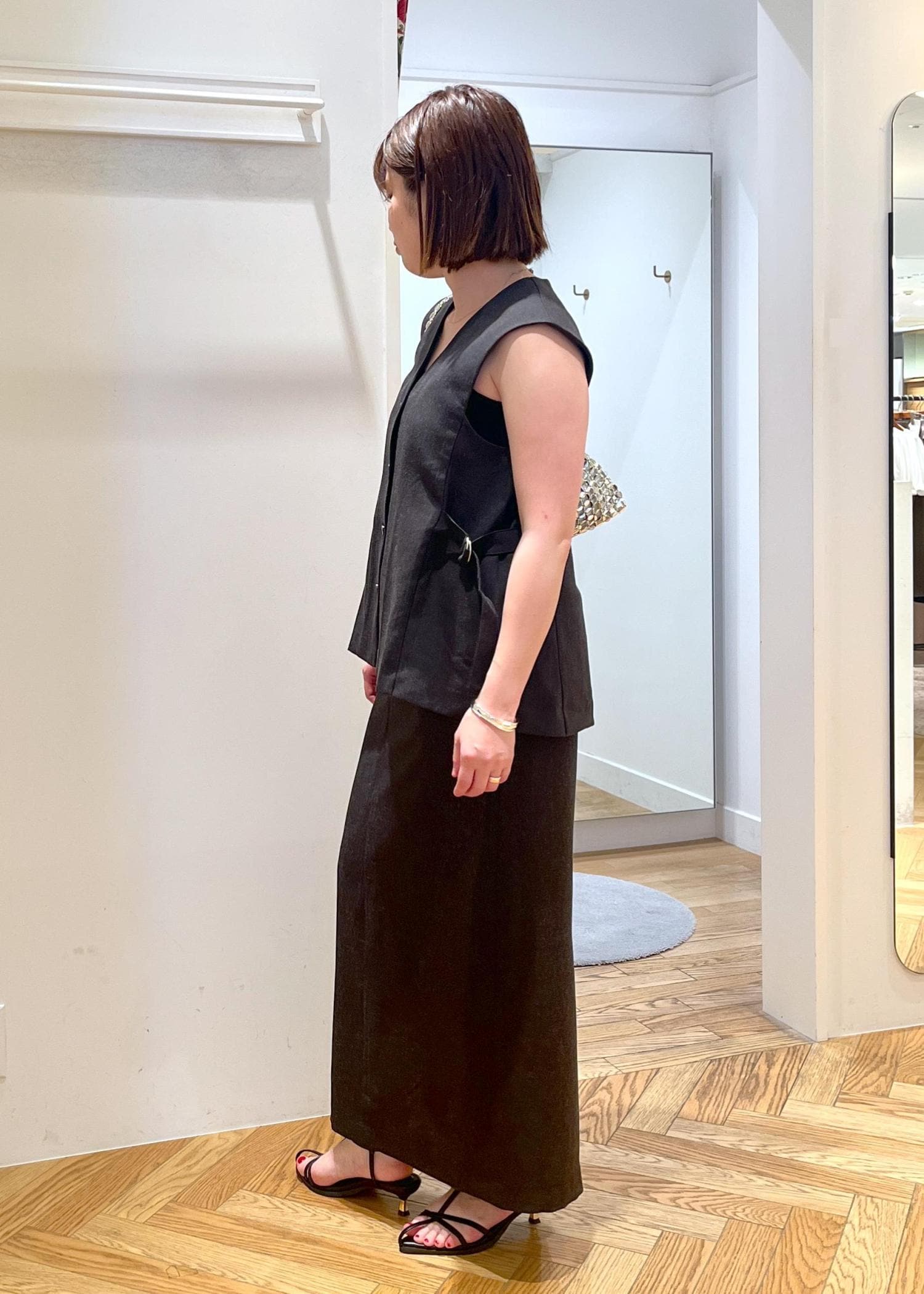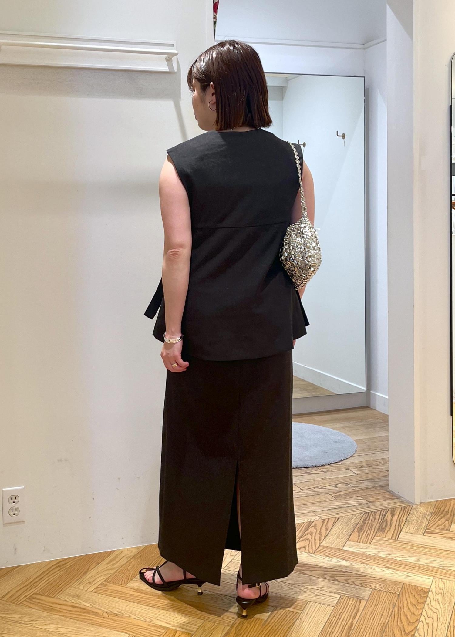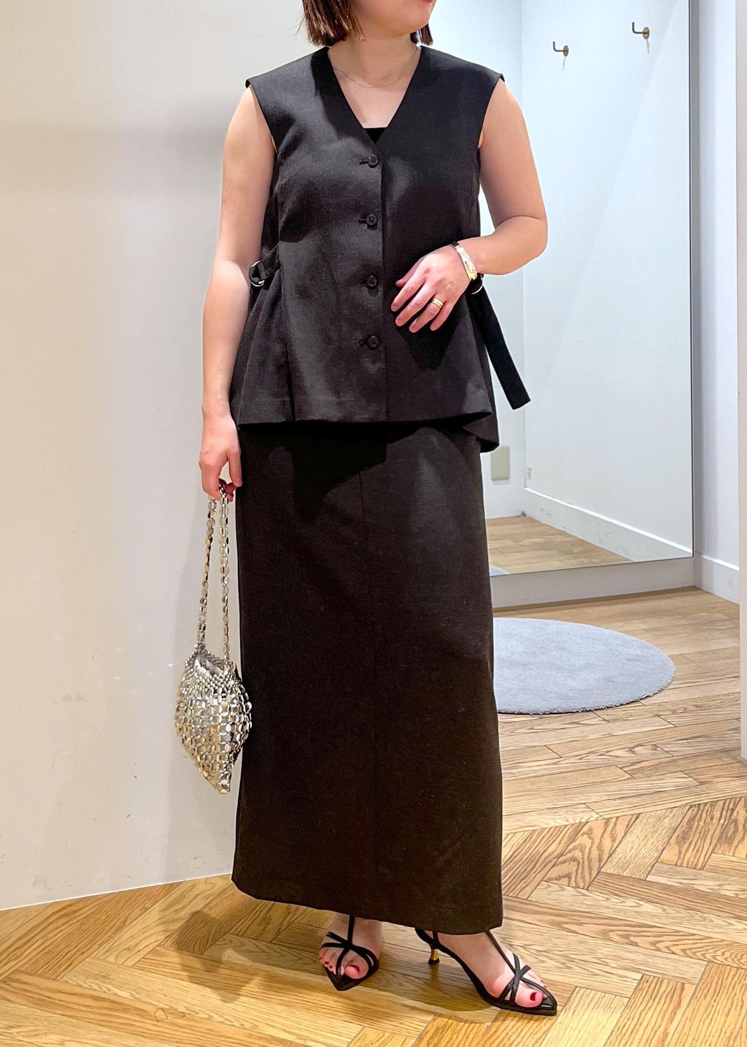 着回しが効く、ベスト×スカートのセットアップスタイルです。