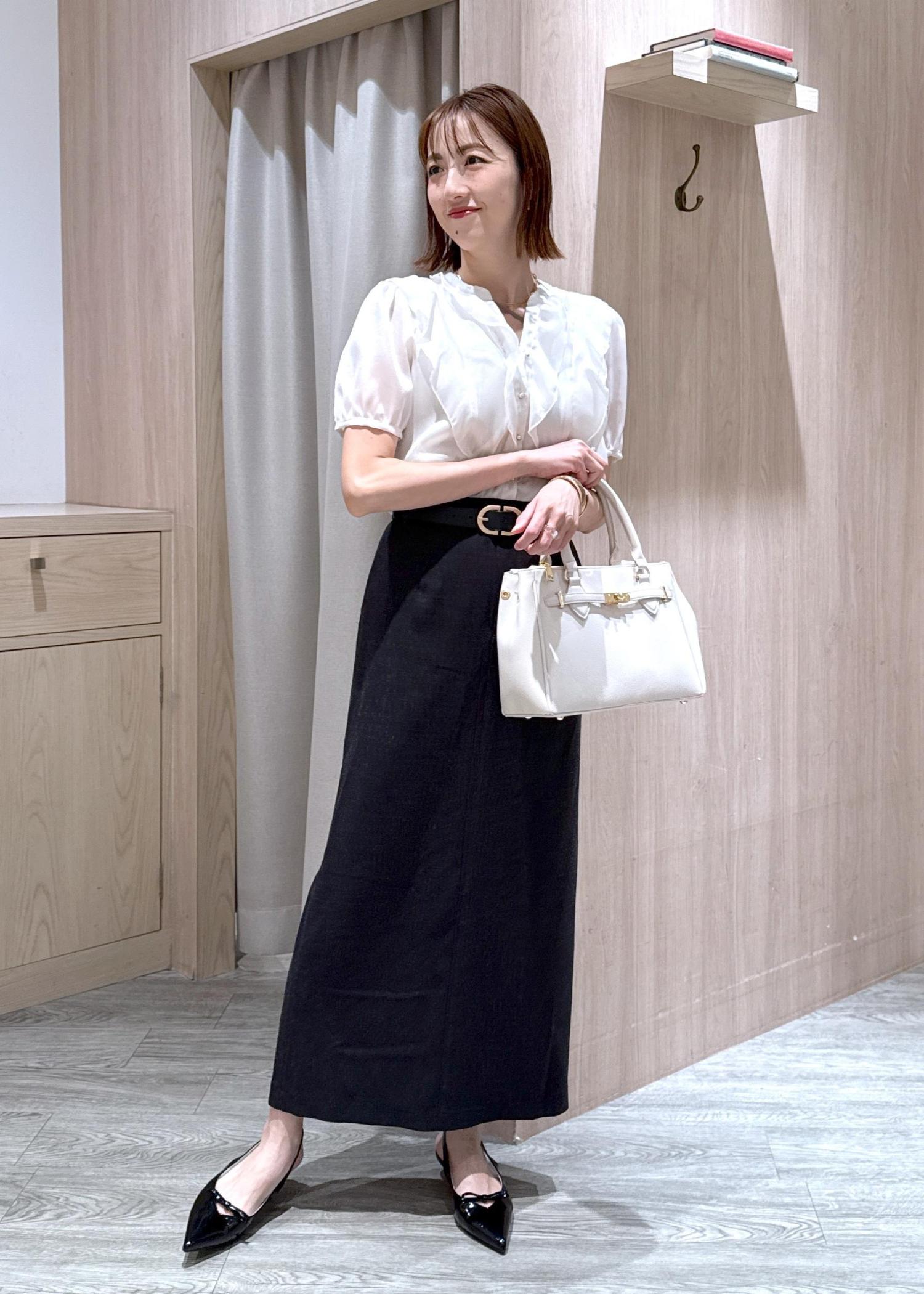 艶っとした女性らしいブラウス×タイトスカートで定番お仕事スタイルです!