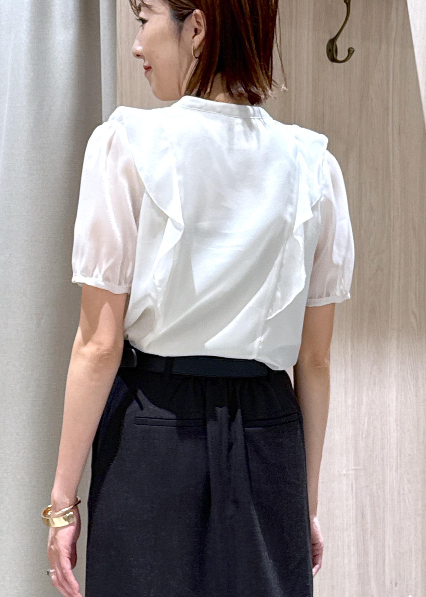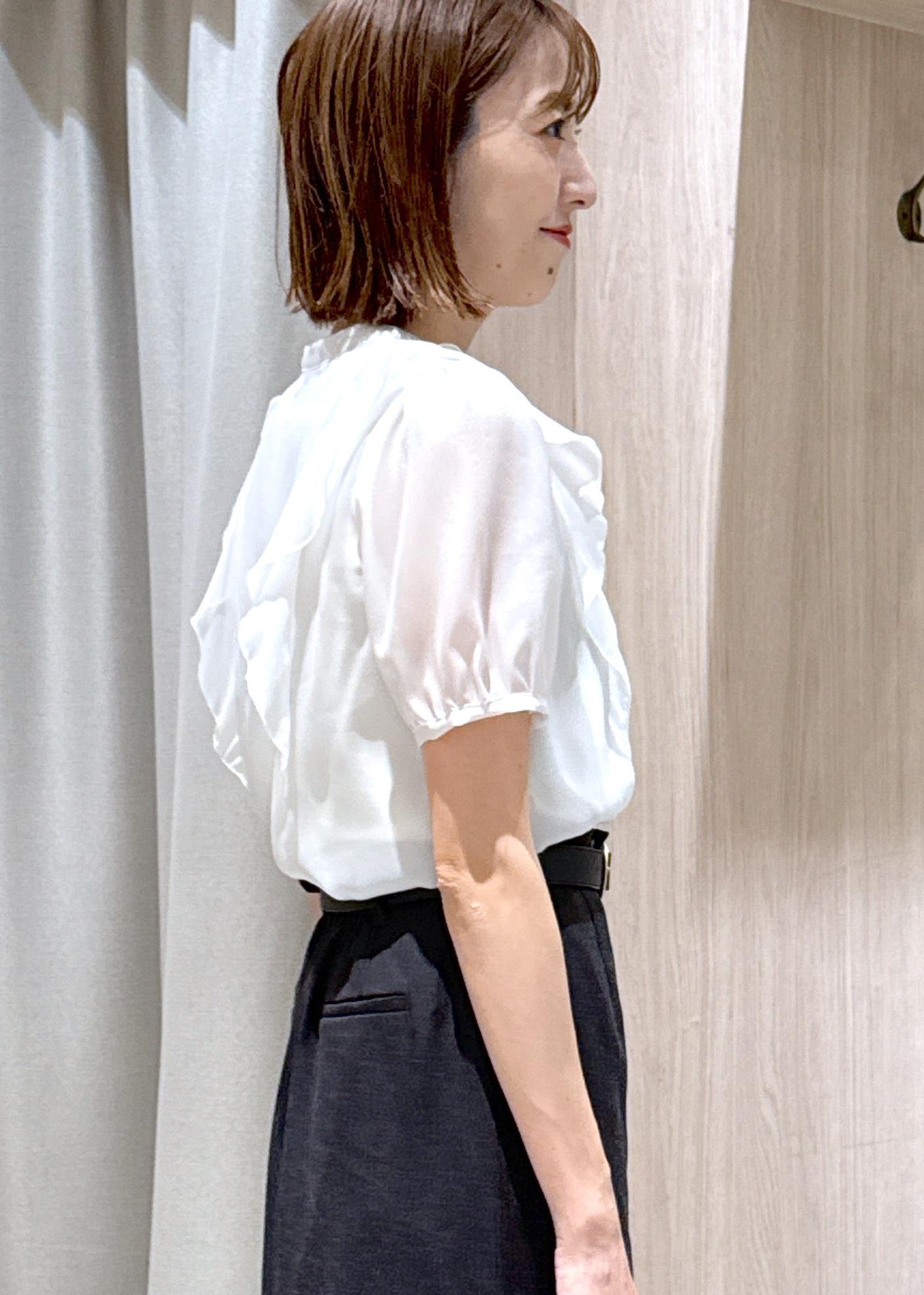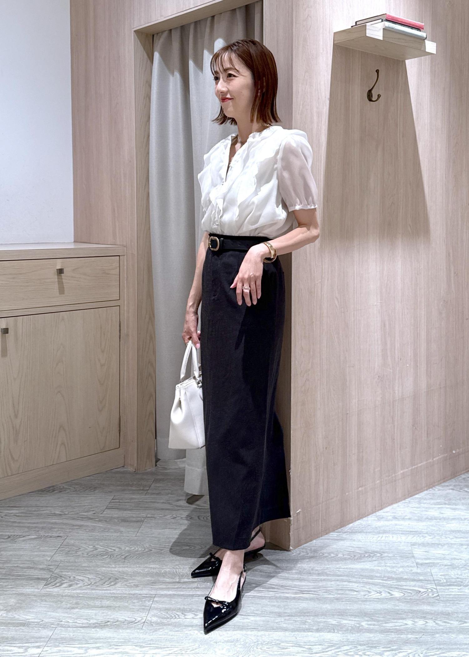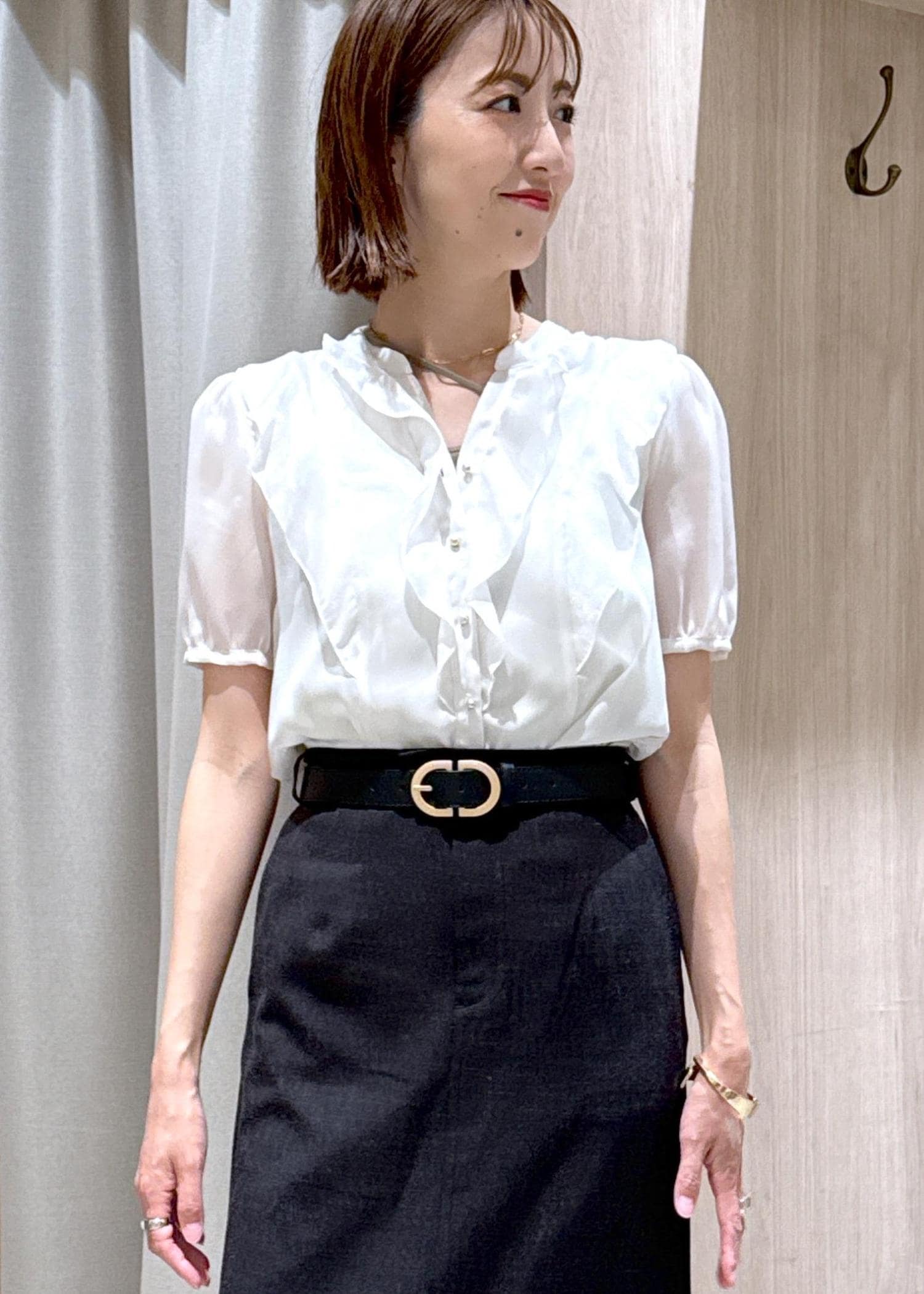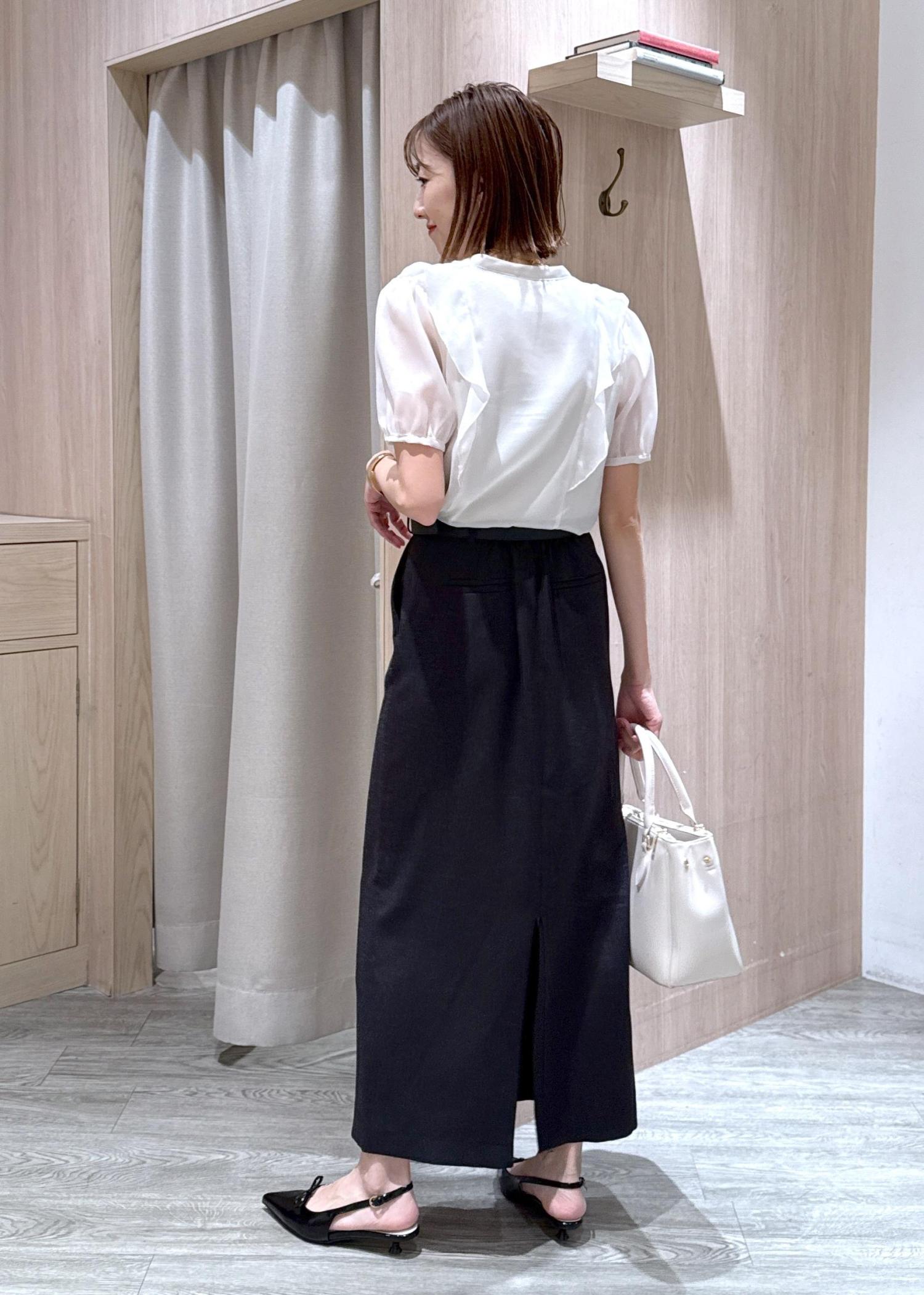 ブラウスはフリルが華やかなのでお仕事後のデートにもピッタリ♪