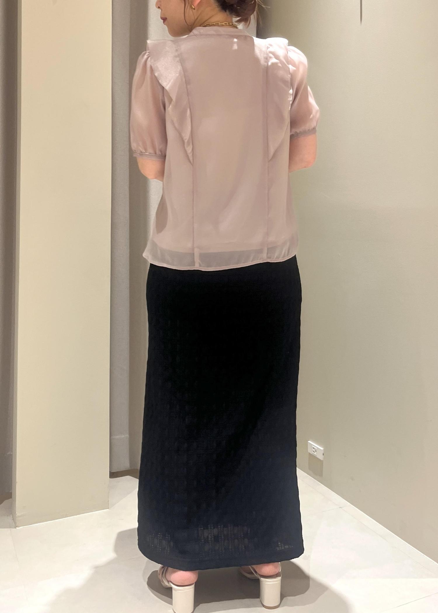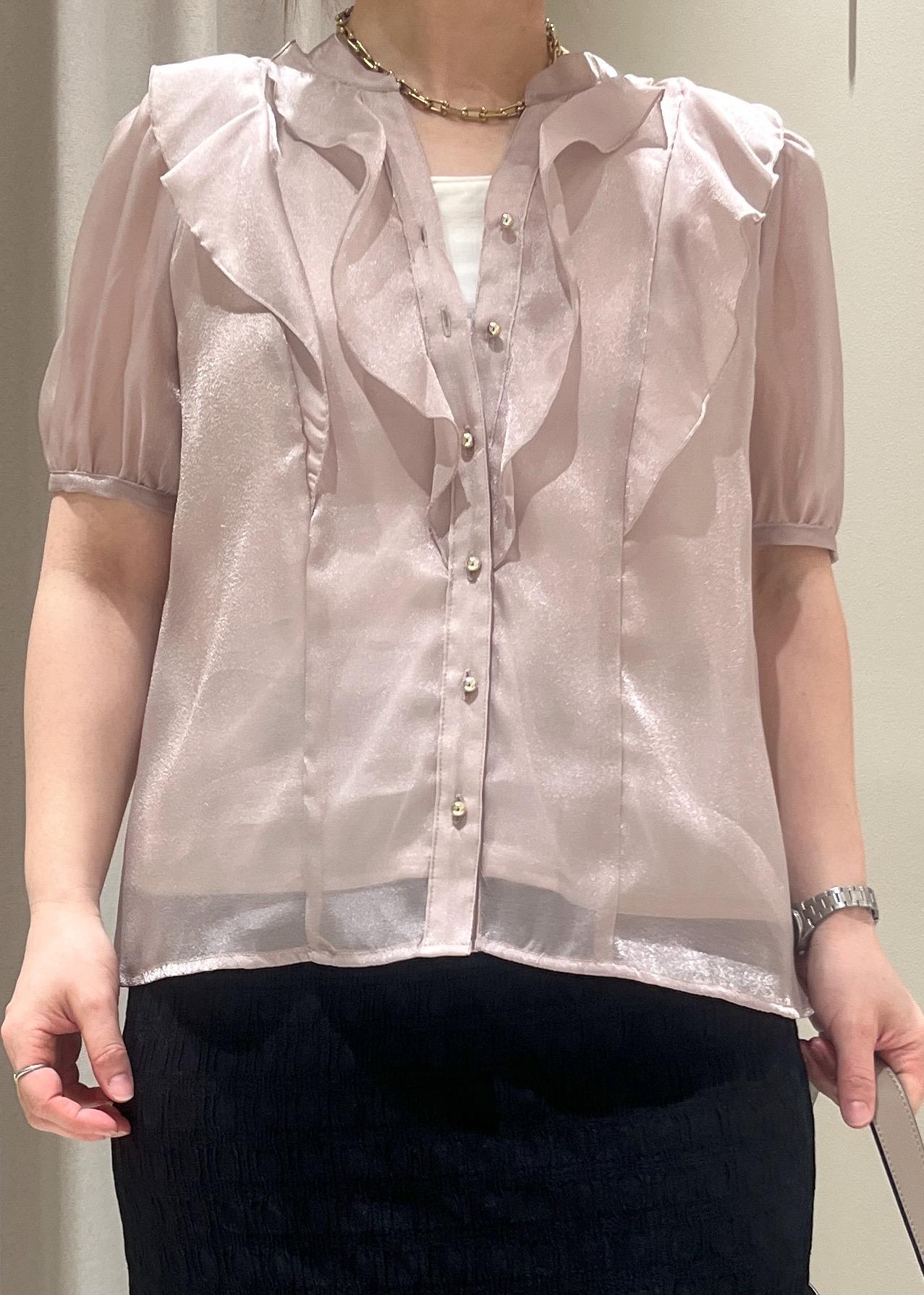 アウトレットVIS【洗える】シアーラッフルフリル半袖ブラウスピンク / F¥4,391レビュー生地のツヤ感がお顔映りを華やかに見せてくれます。