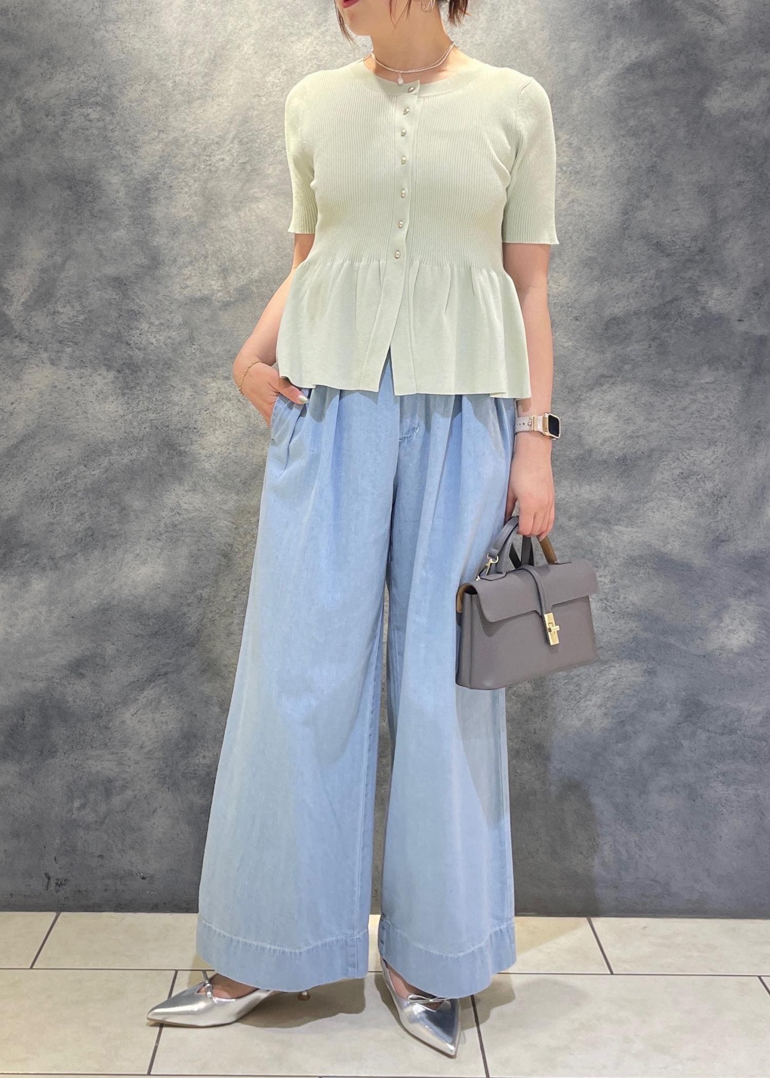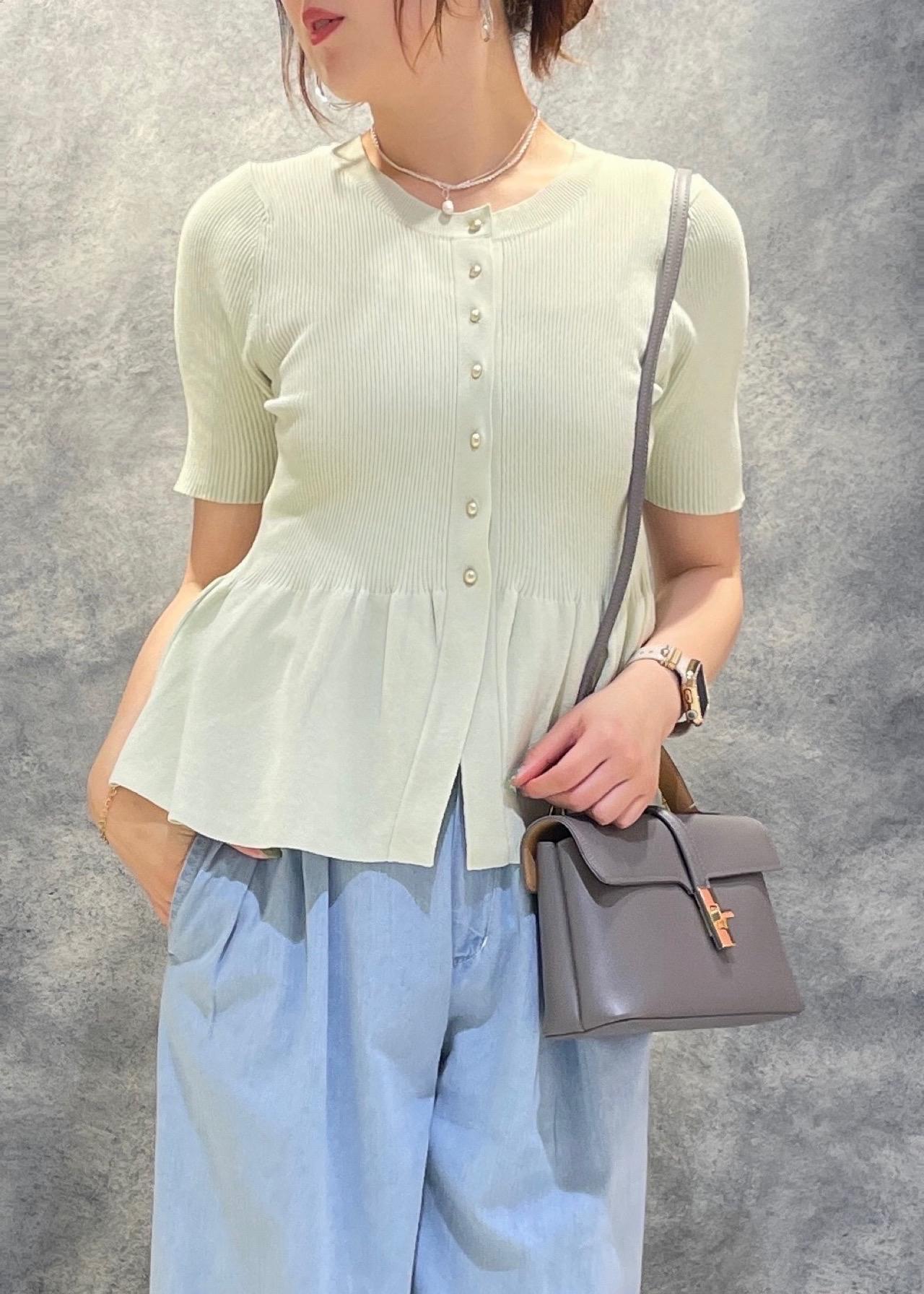 アウトレットVIS【アンチピリング】ペプラムハーフスリーブニットカーディガンライトグリーン / F¥4,391レビュー二の腕や腰周りが隠れます!