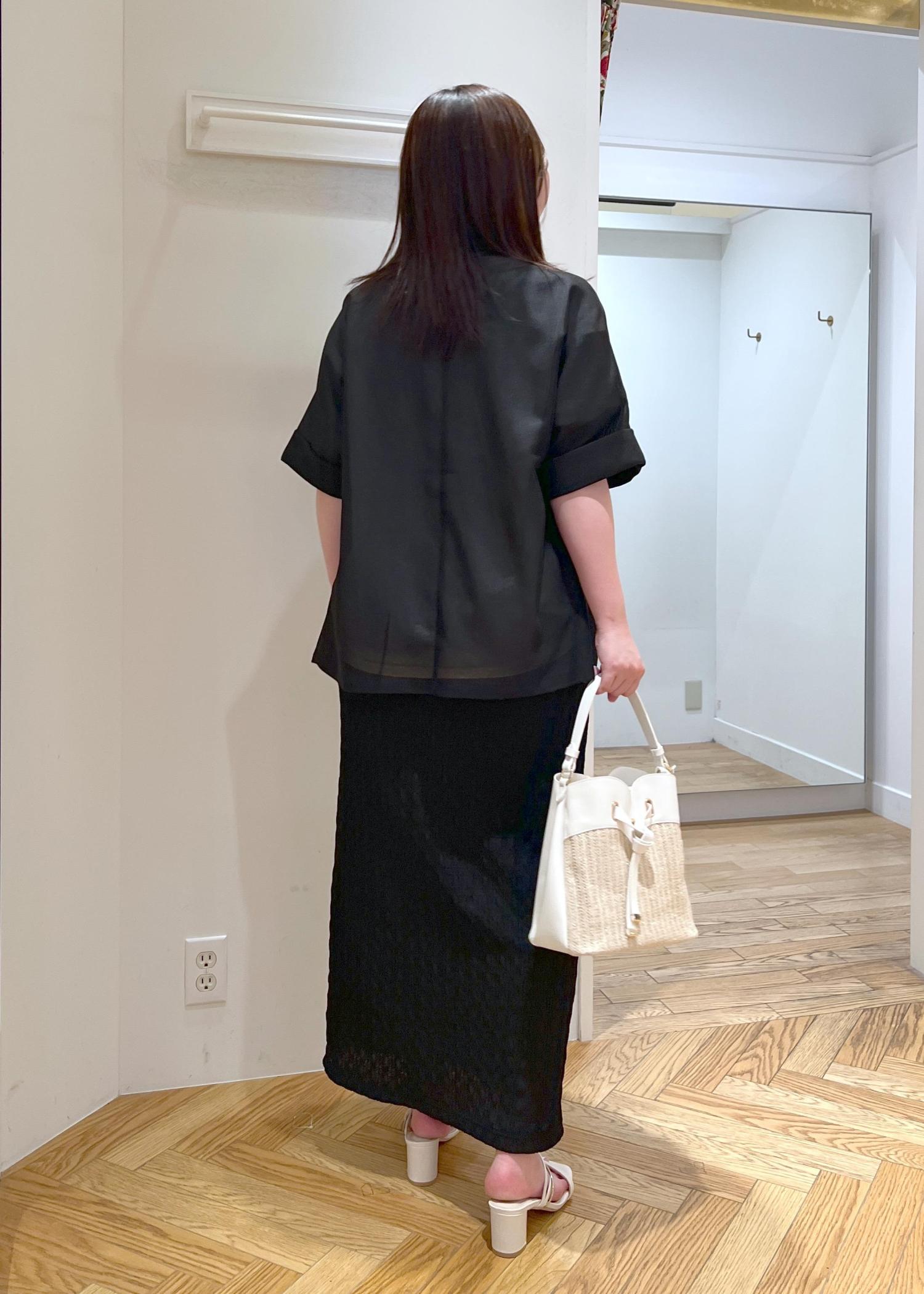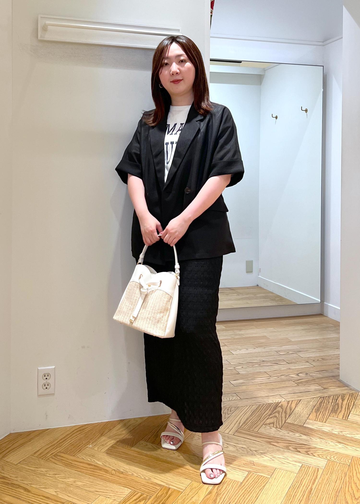 ブラックのジャケットにブラックのスカートでかっこよくシンプルに✨