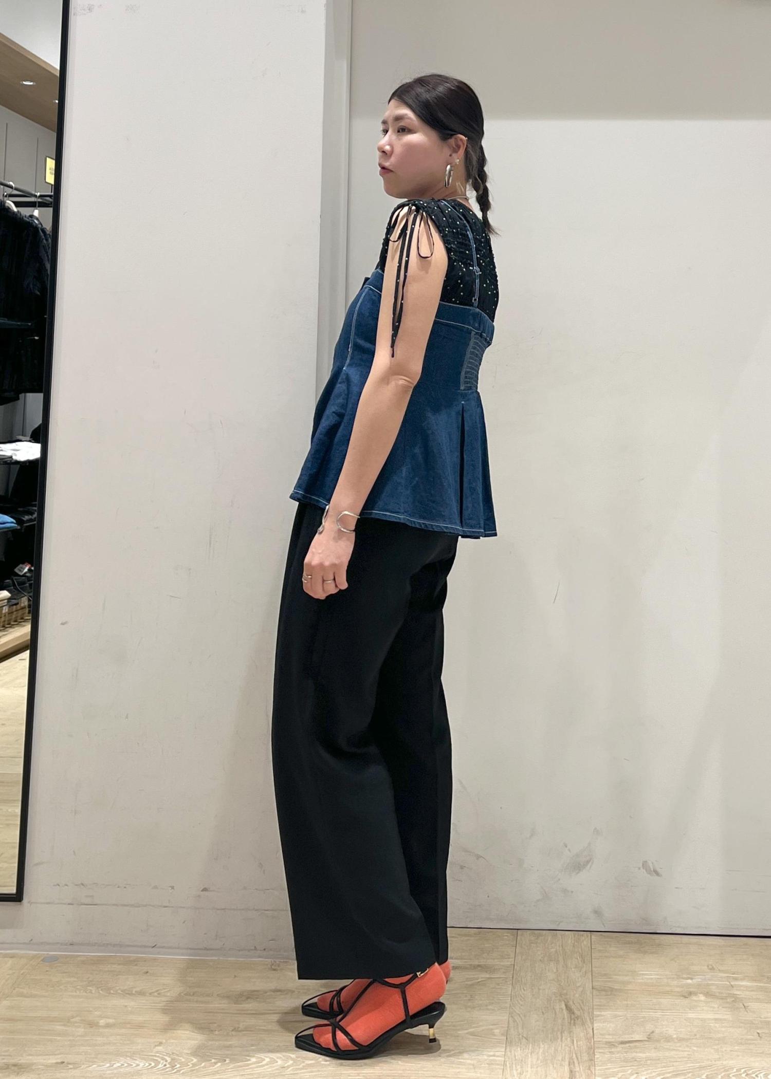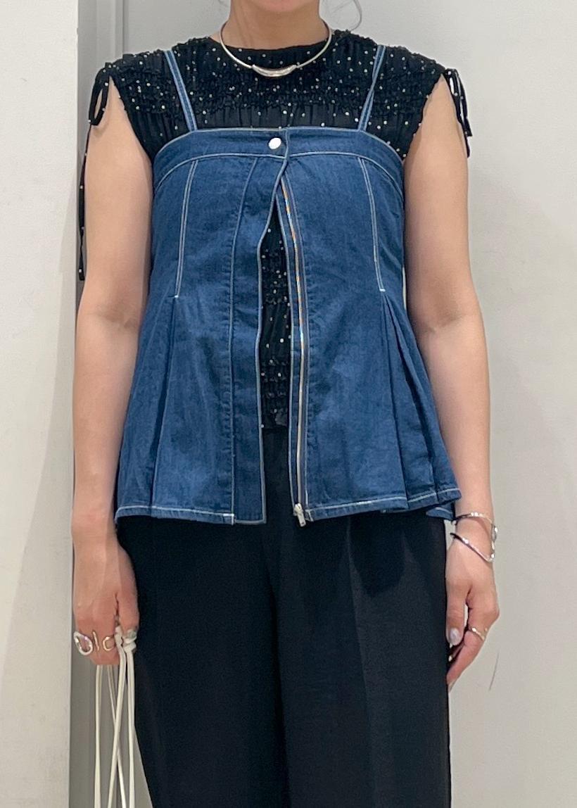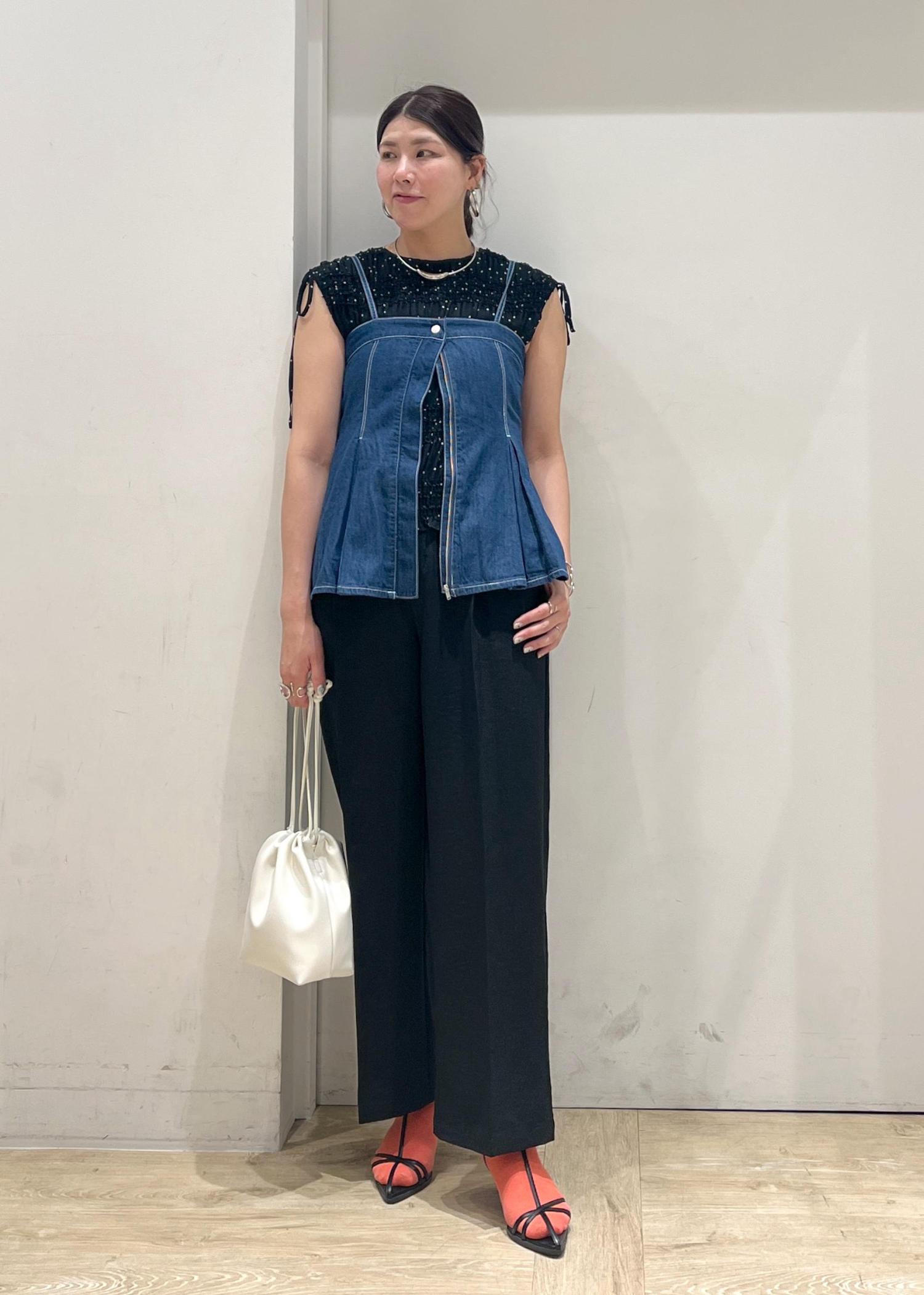 ドット柄やプリーツ・シャーリングデザインが映えるブラウスに美easyパンツ合わせで大人な雰囲気を、デニムビスチェ合わせでカジュアルダウン。