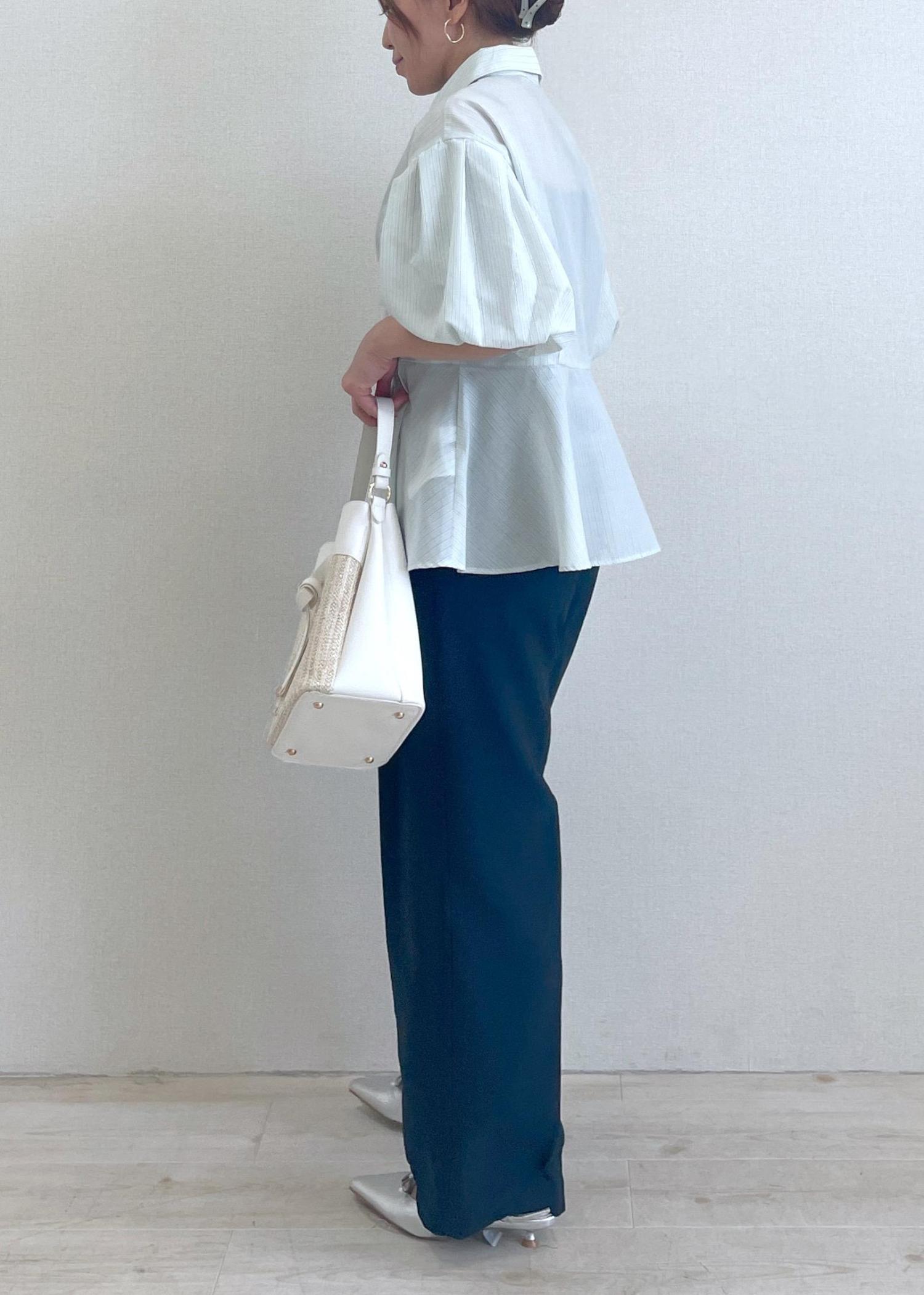 ブラウスの丈感が短めなので、低身長の方でもバランスよく着られます◎