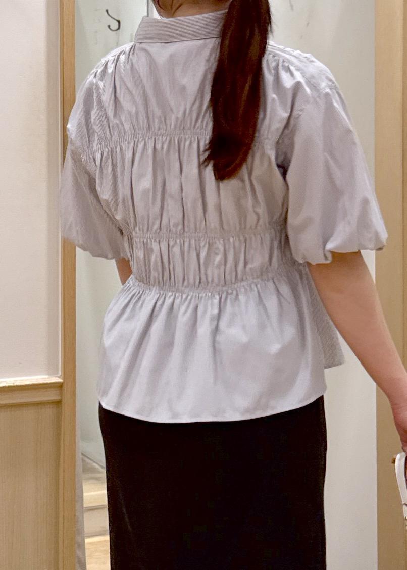 VIS【新色追加】【店頭人気】シャーリングバルーンシャツグレー / F¥5,489レビュー着痩せデザインのシャツ!