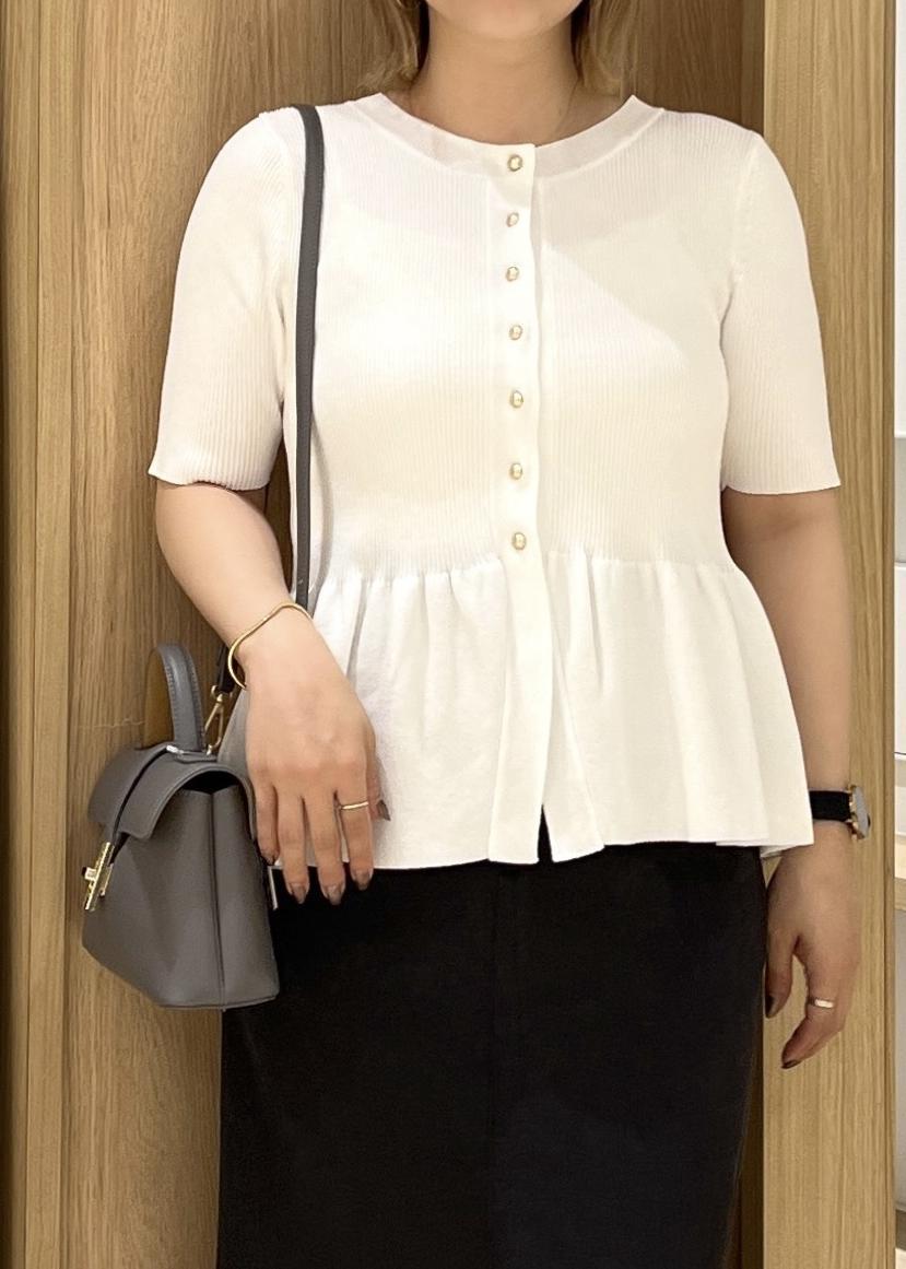 アウトレットVIS【アンチピリング】ペプラムハーフスリーブニットカーディガンオフホワイト / F¥4,391レビュー切替位置が高めのペプラムシルエットは低身長さんでもスタイルアップして見えます!