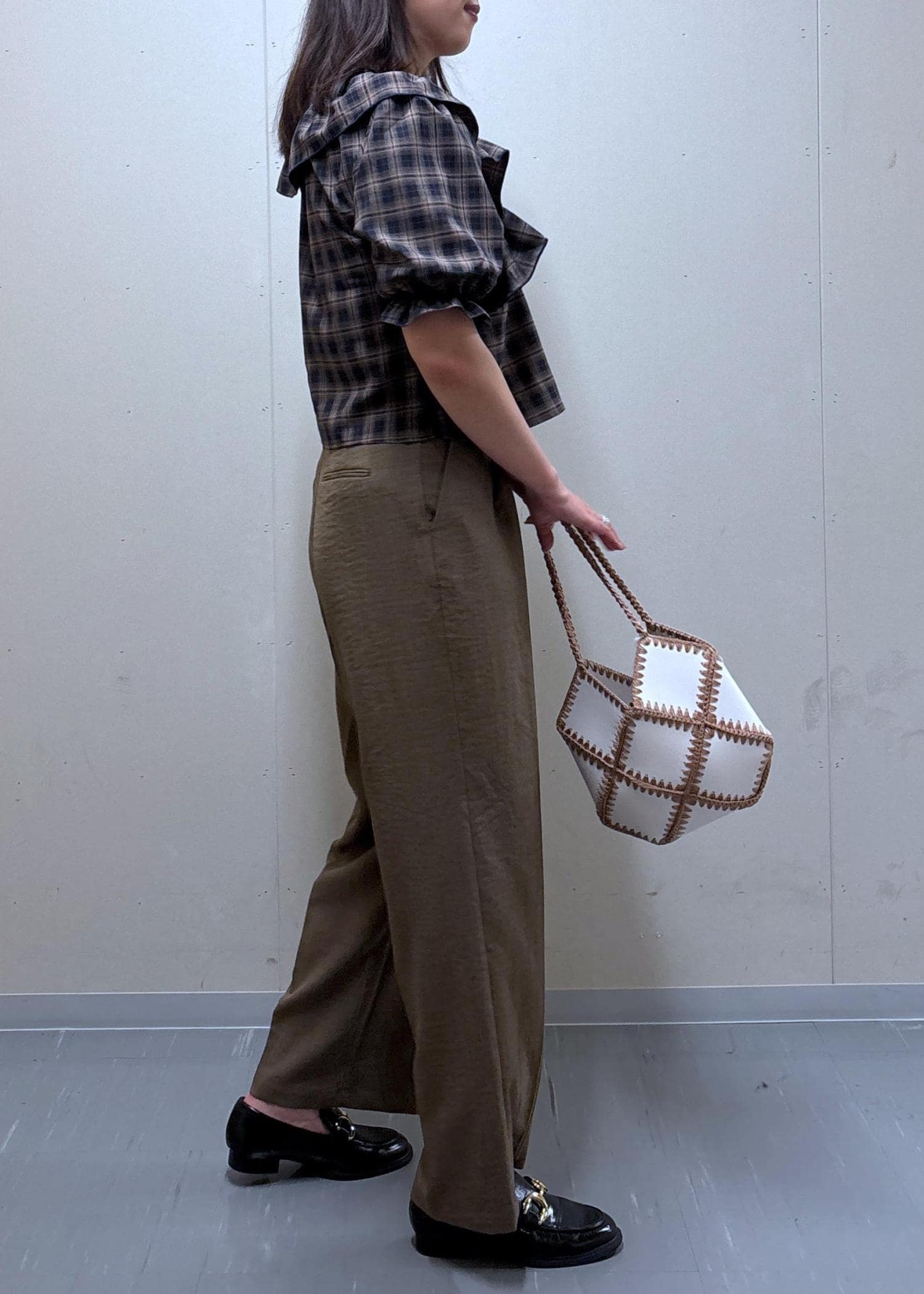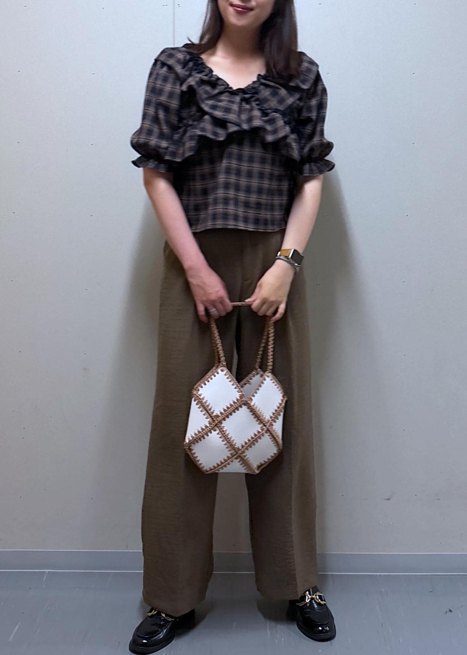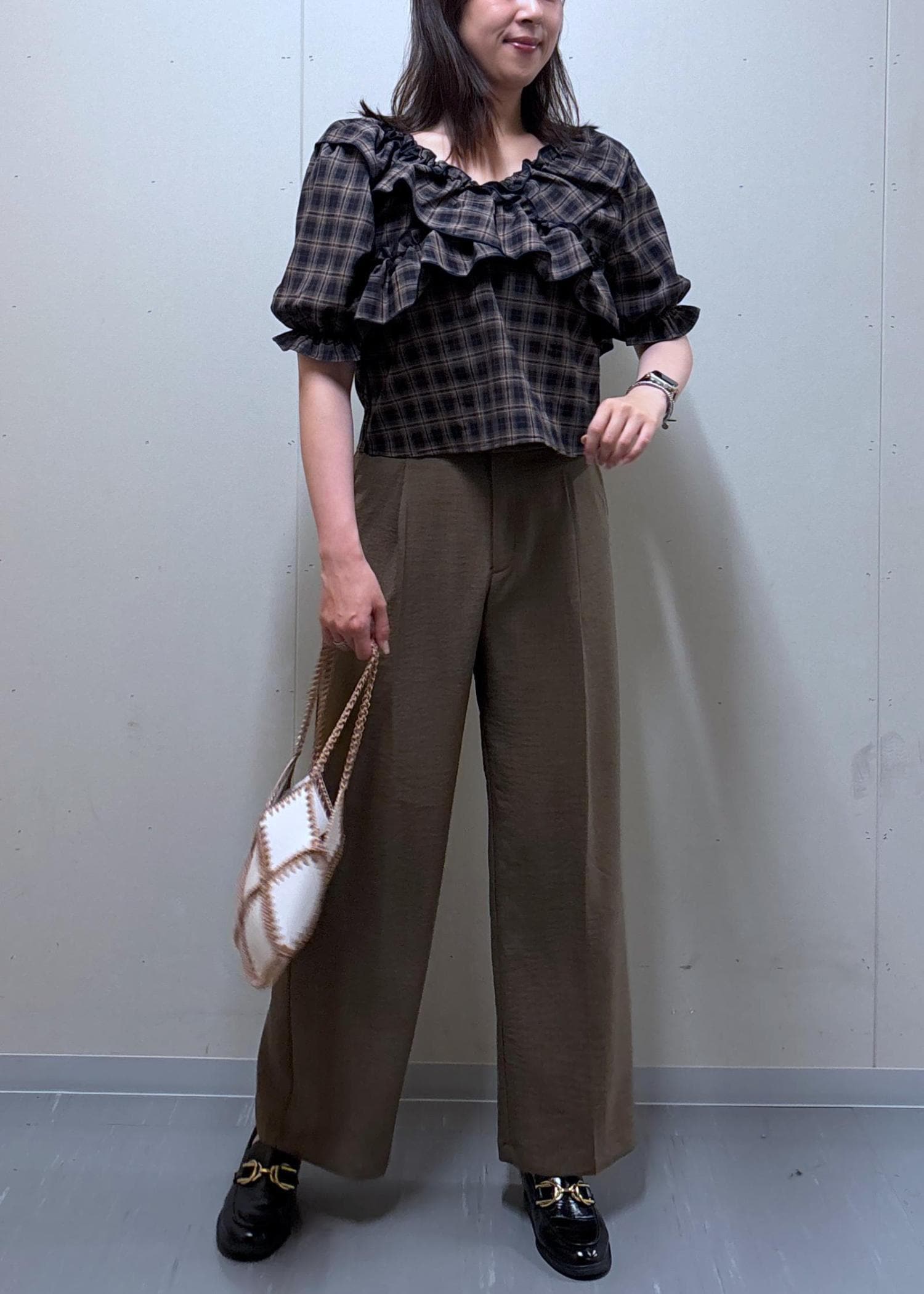 チェック柄オフショルブラウス
