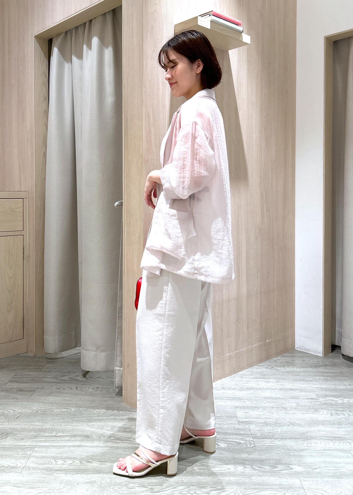 Fサイズですが、シアー感のある素材なので重くならずスタント落ちてくれるシルエットです。 -