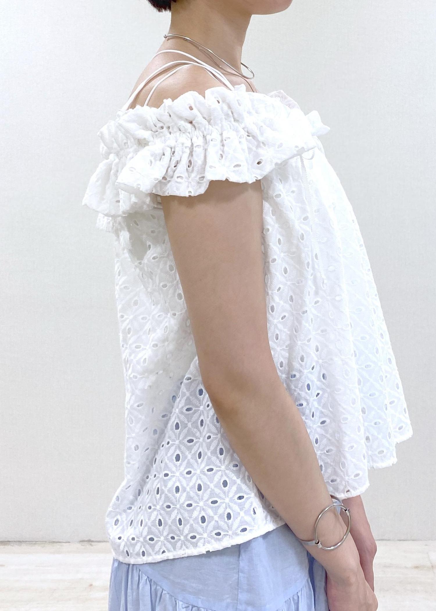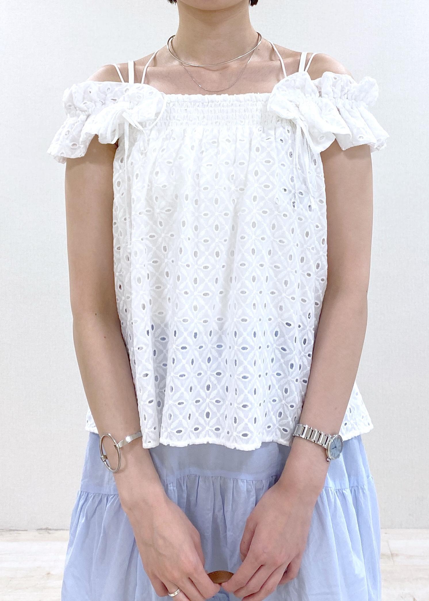 【2WAY】エンブロイダリーレースショルダーブラウス