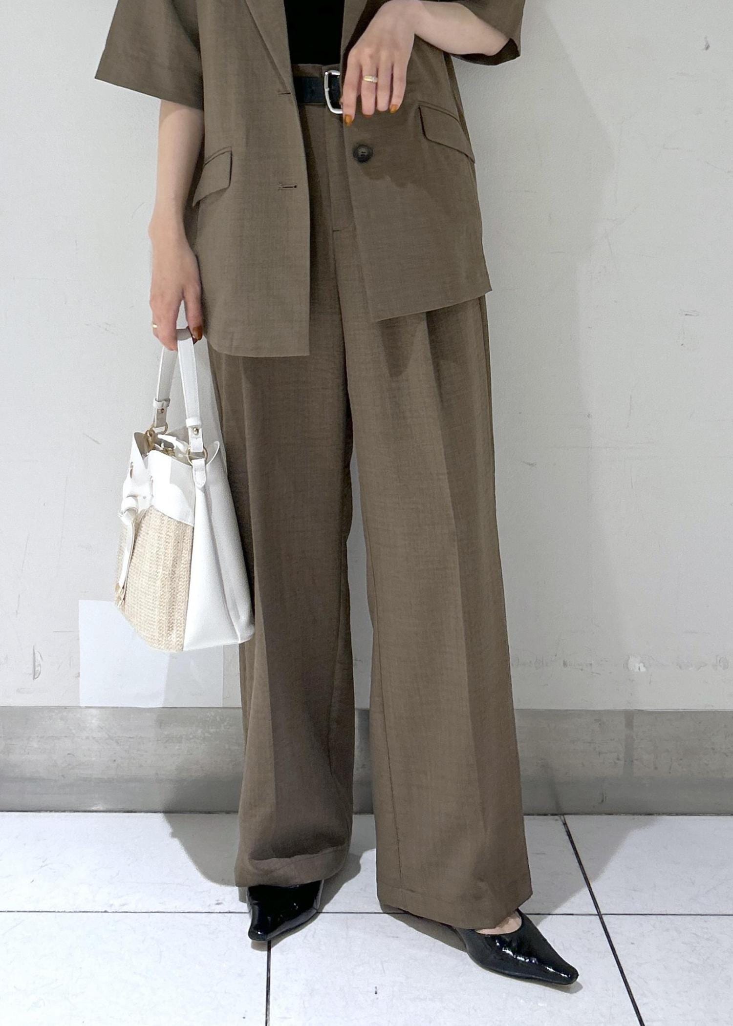 ワイドパンツですが、太すぎずキレイめにも合わせられるのが嬉しいポイント! -