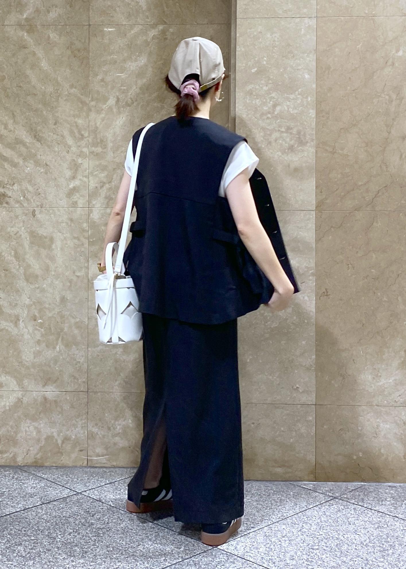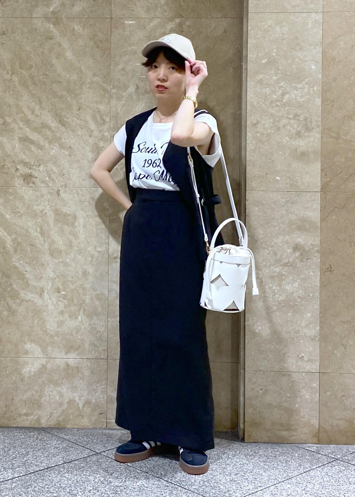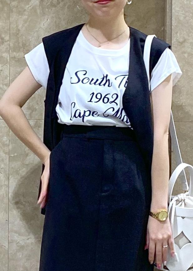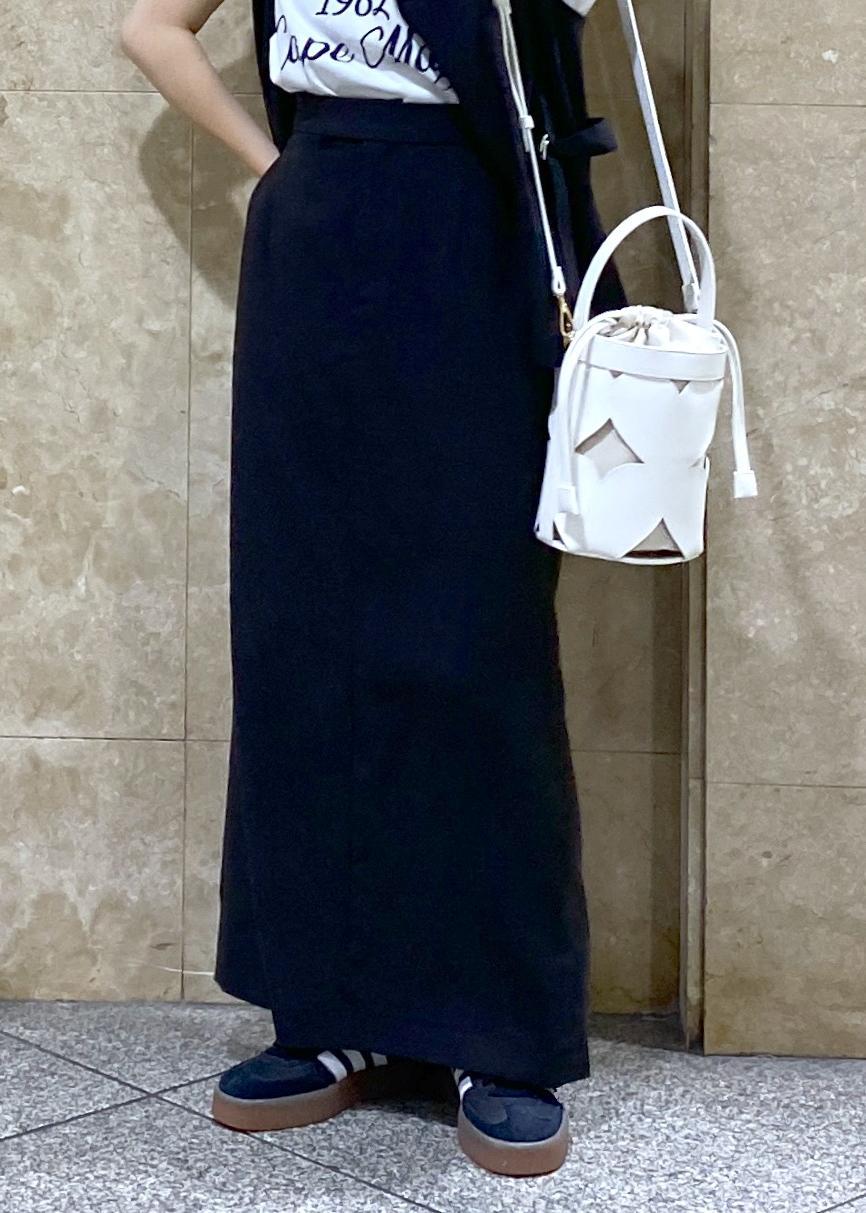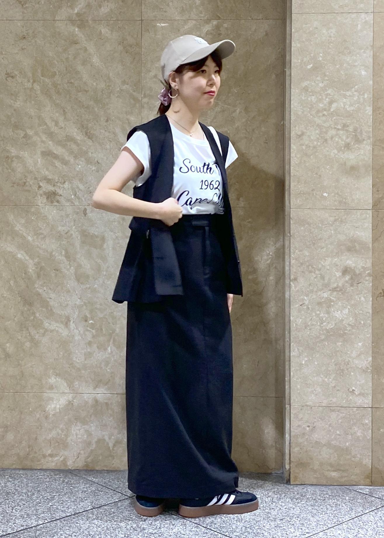 Tシャツにパンツはカジュアルになるので少し可愛さも入れたかったのでタイトスカートを合わせてみました!
