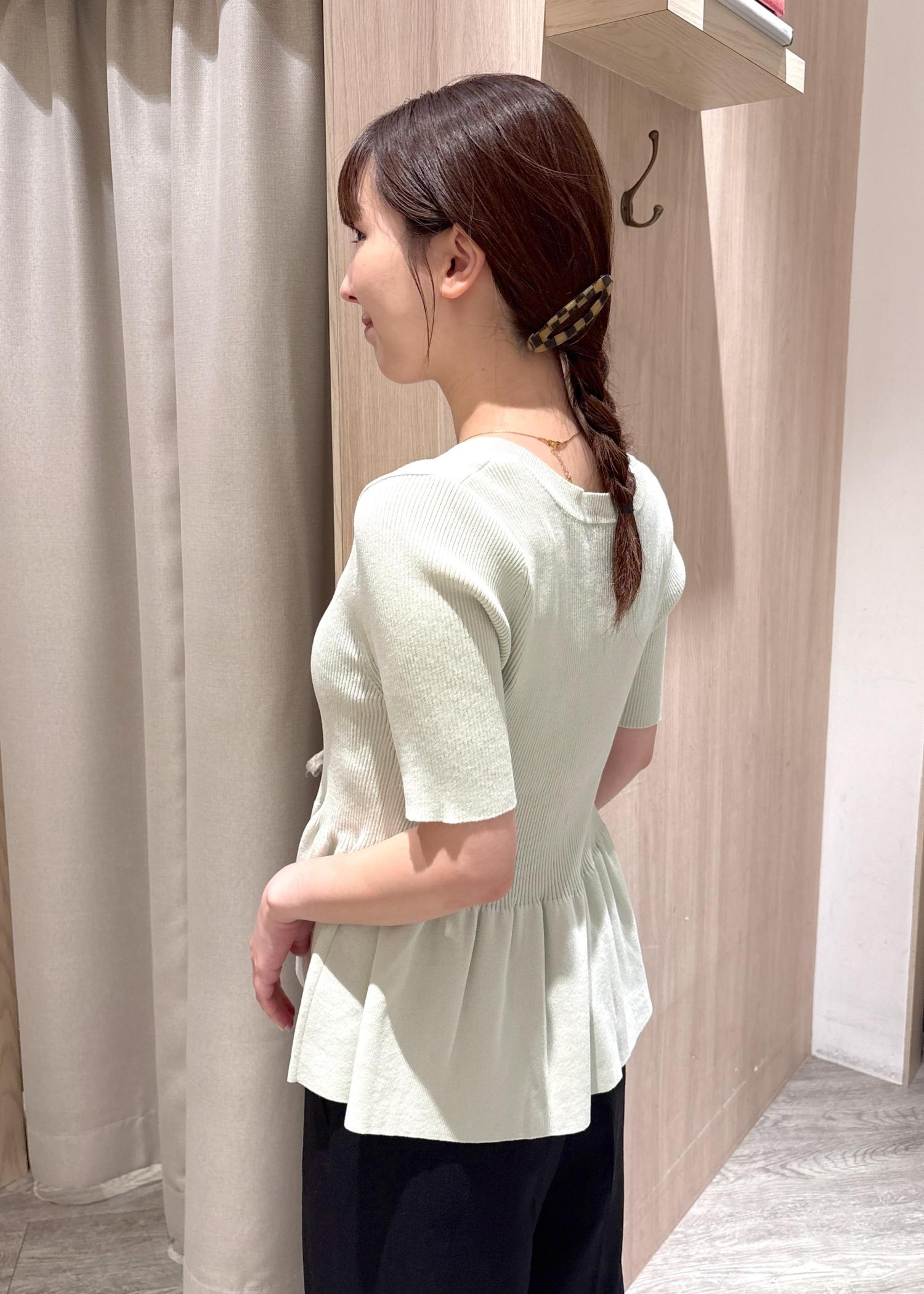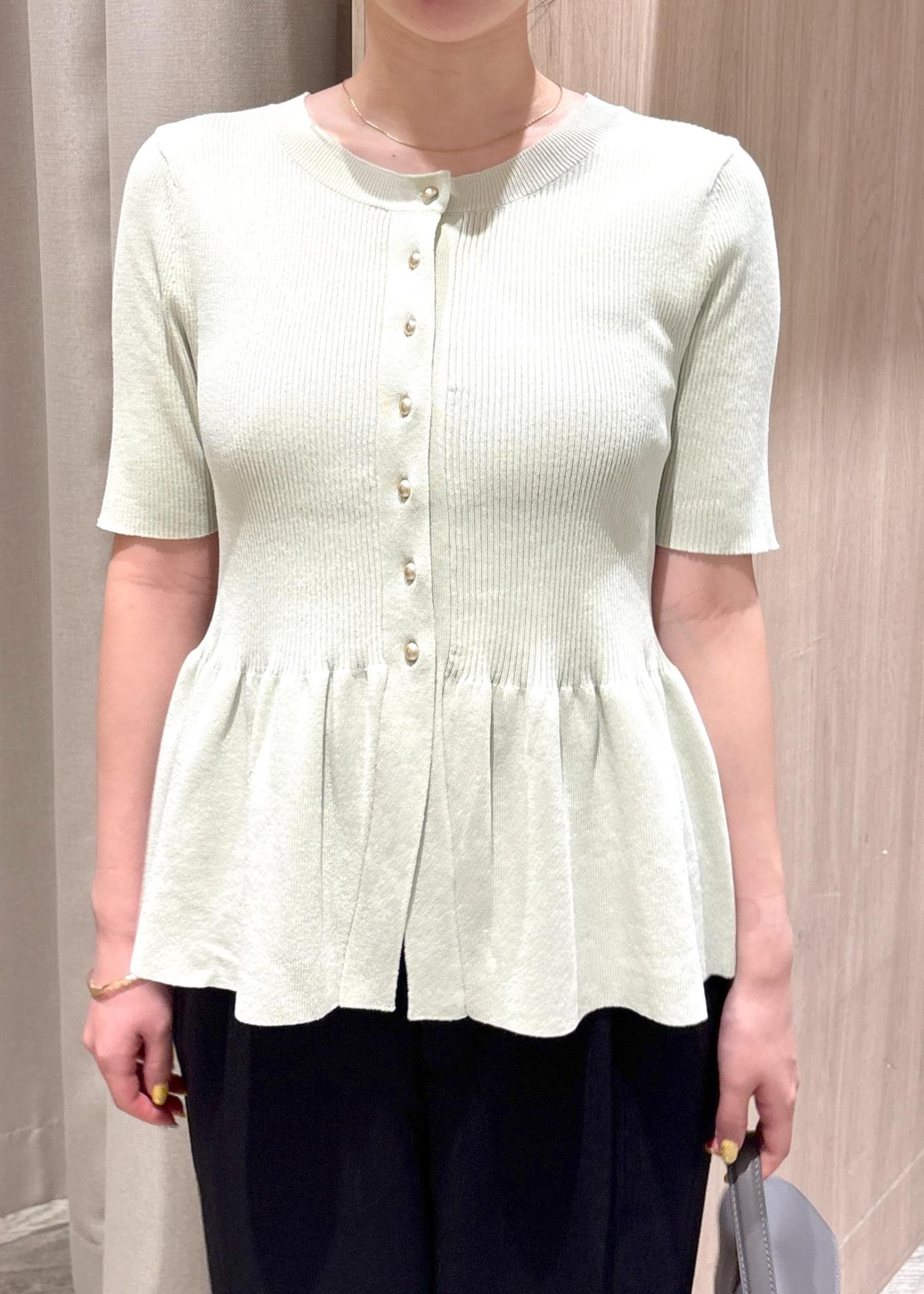 アウトレットVIS【アンチピリング】ペプラムハーフスリーブニットカーディガンライトグリーン / F¥4,391レビュー一枚で着映えするデザイン性のあるトップスなので今からの時期重宝します◎
