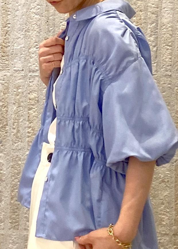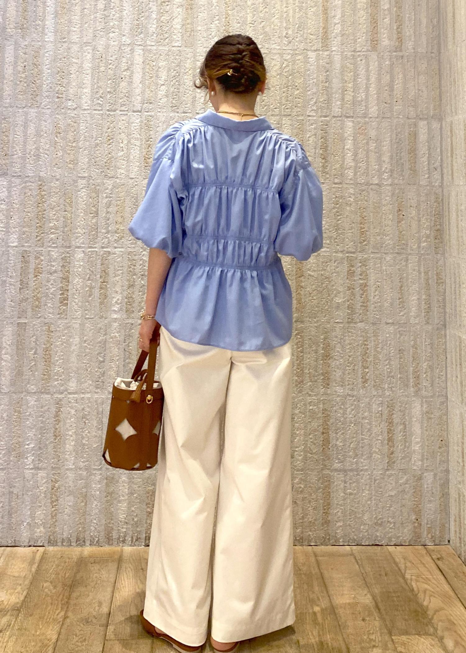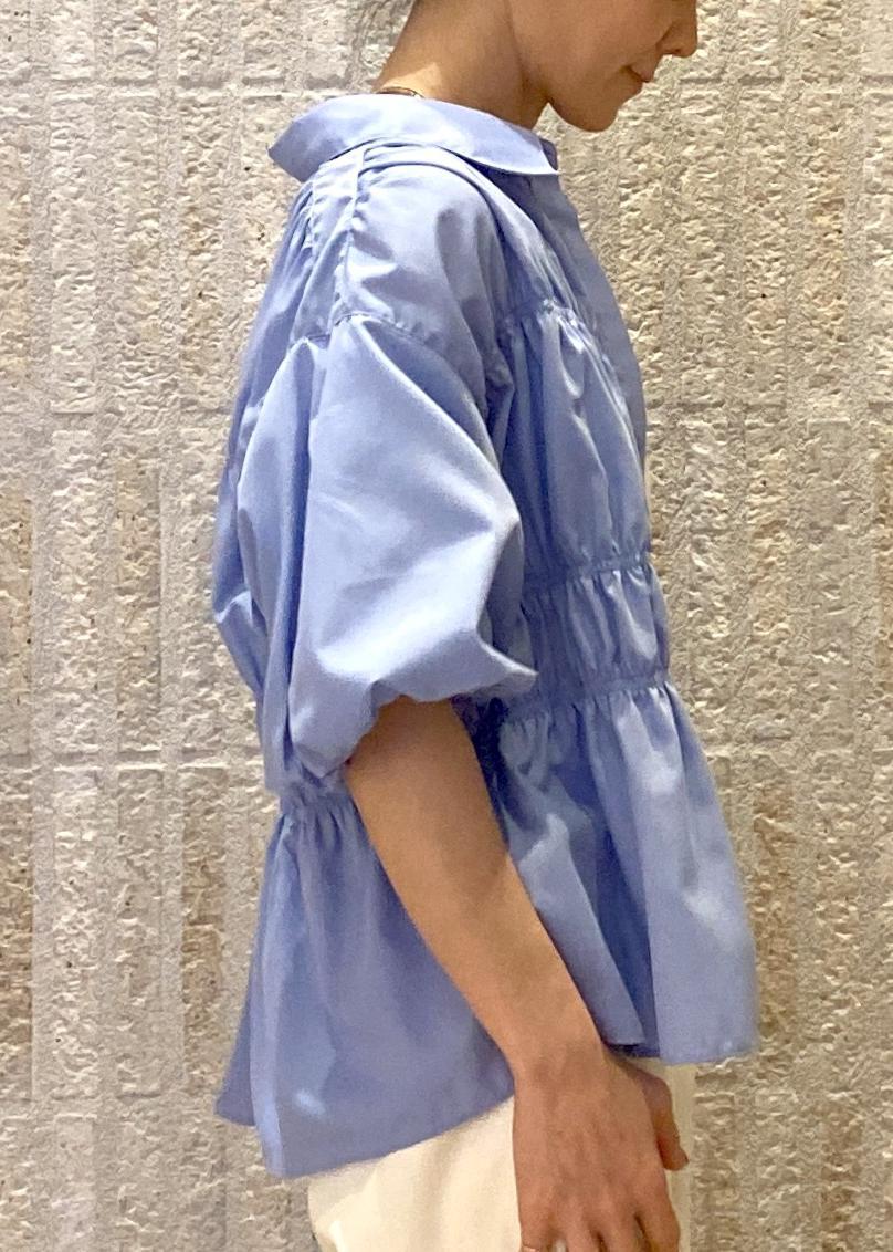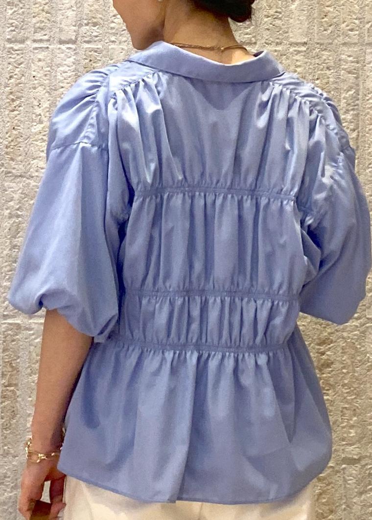VIS【新色追加】【店頭人気】シャーリングバルーンシャツブルー / F¥5,489レビュー大人気のシャーリングシャツが今年も登場!袖のふんわり感が肘下を細く見せてくれて、二の腕が隠れる袖丈で二の腕カバーもしてくれるのが◎!