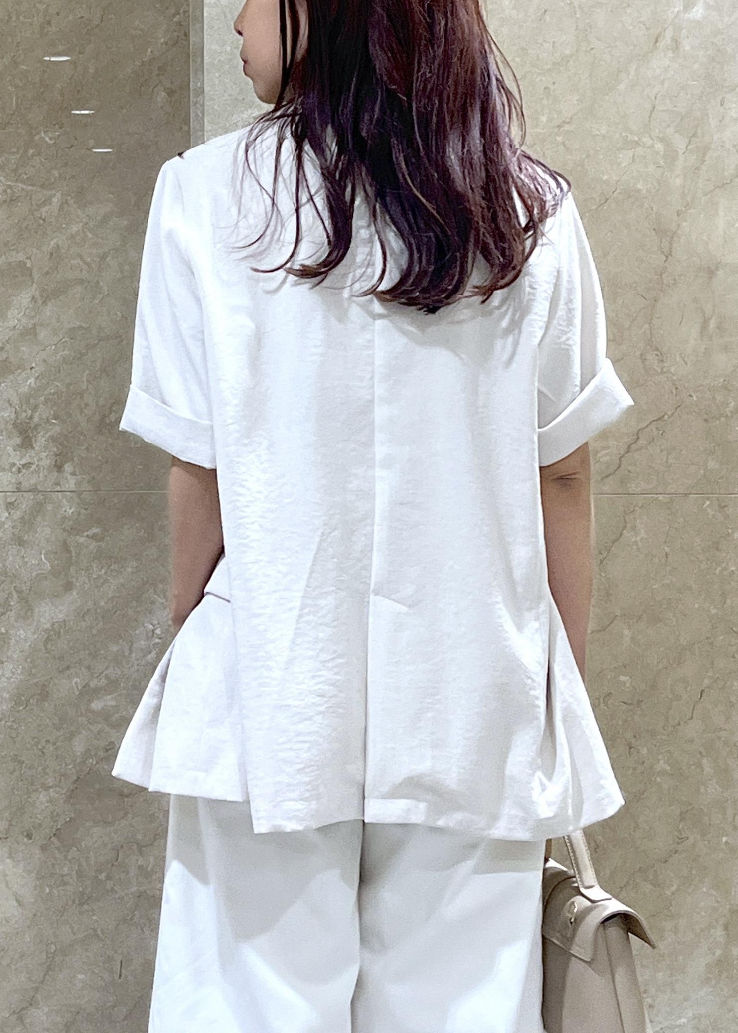 裏地もなくさらっと涼しい素材感なので、真夏にも涼しく着用いただけ、リネンライクのほどよくラフな風合いがお仕事のシーンにもカジュアルシーンにもマッチ!