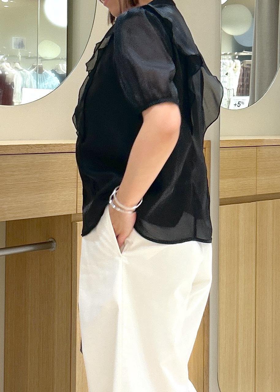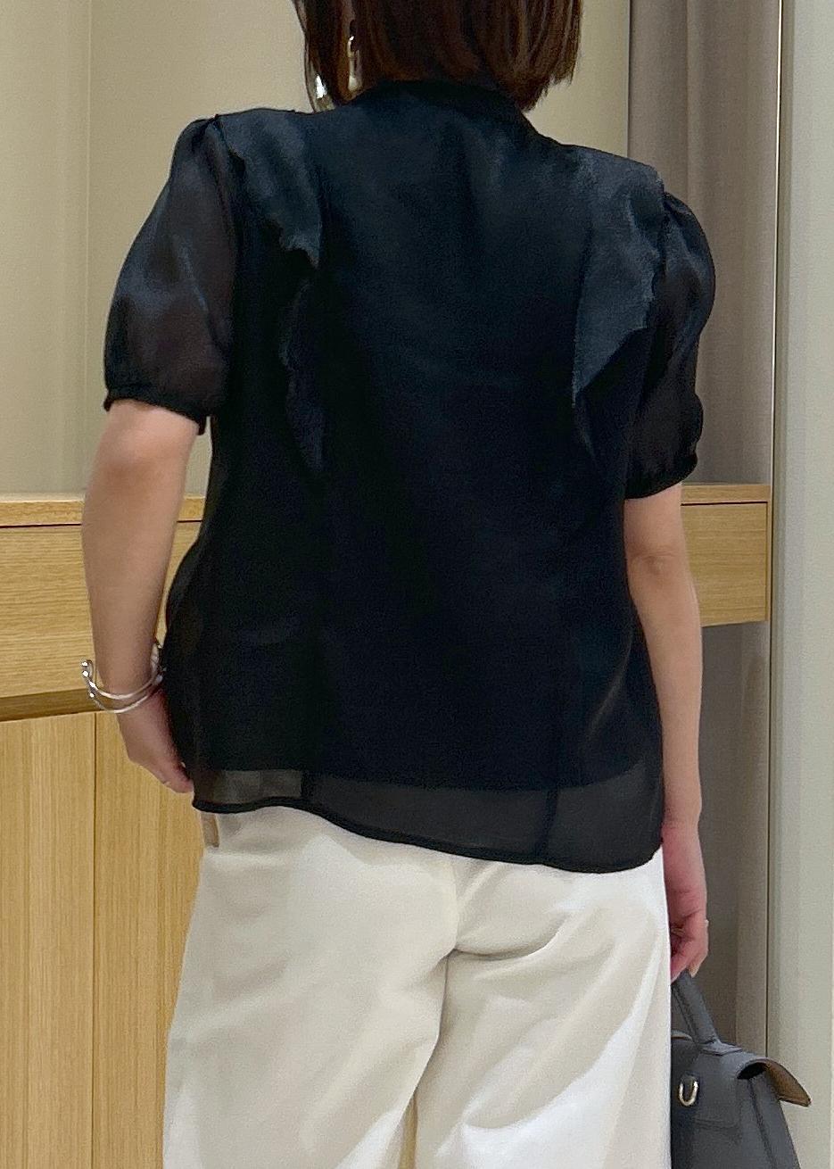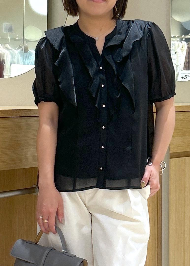 アウトレットVIS【洗える】シアーラッフルフリル半袖ブラウスブラック / F¥4,391レビューシアーフリルが華やかなブラウスです。
