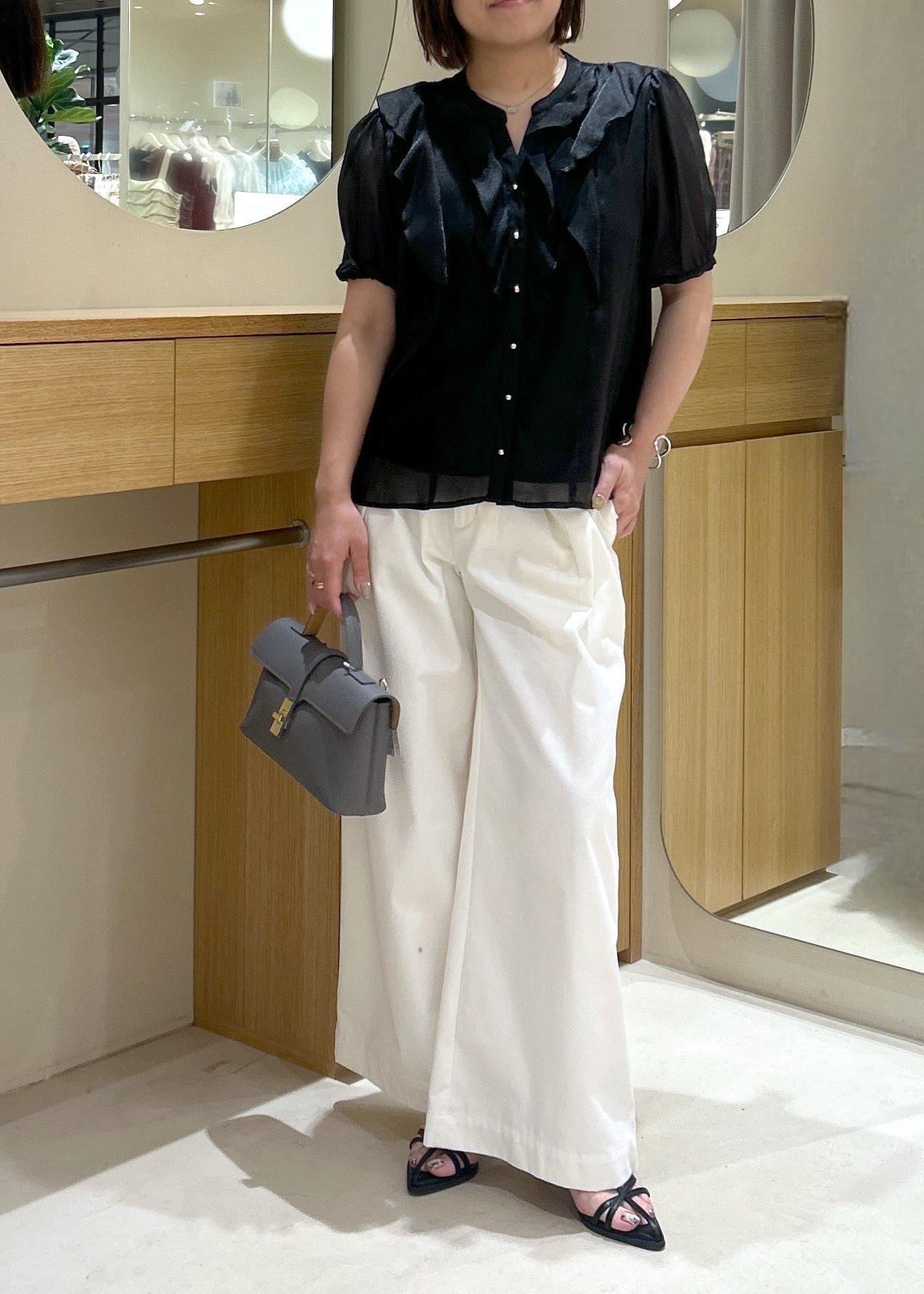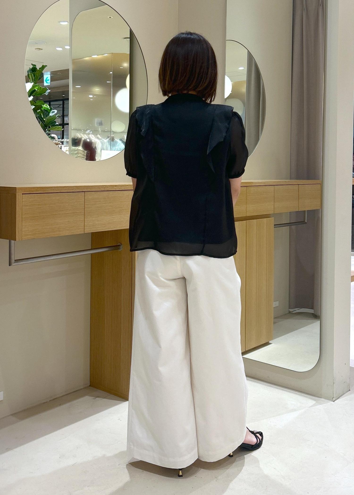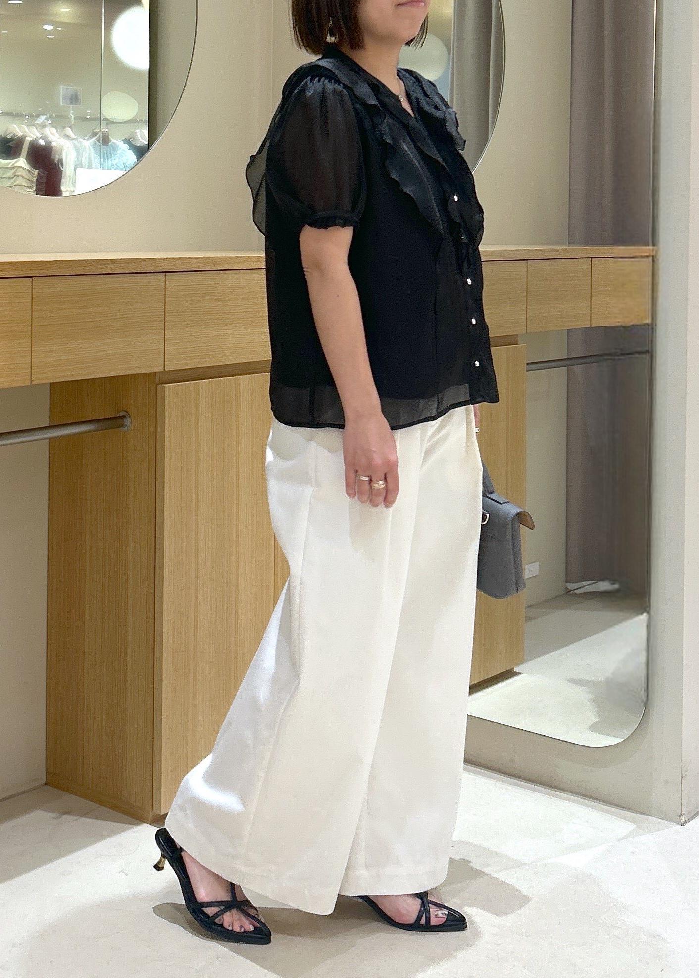アウトレットVIS【洗える】シアーラッフルフリル半袖ブラウスブラック / F¥4,391レビューシアーフリルが華やかなブラウスです。