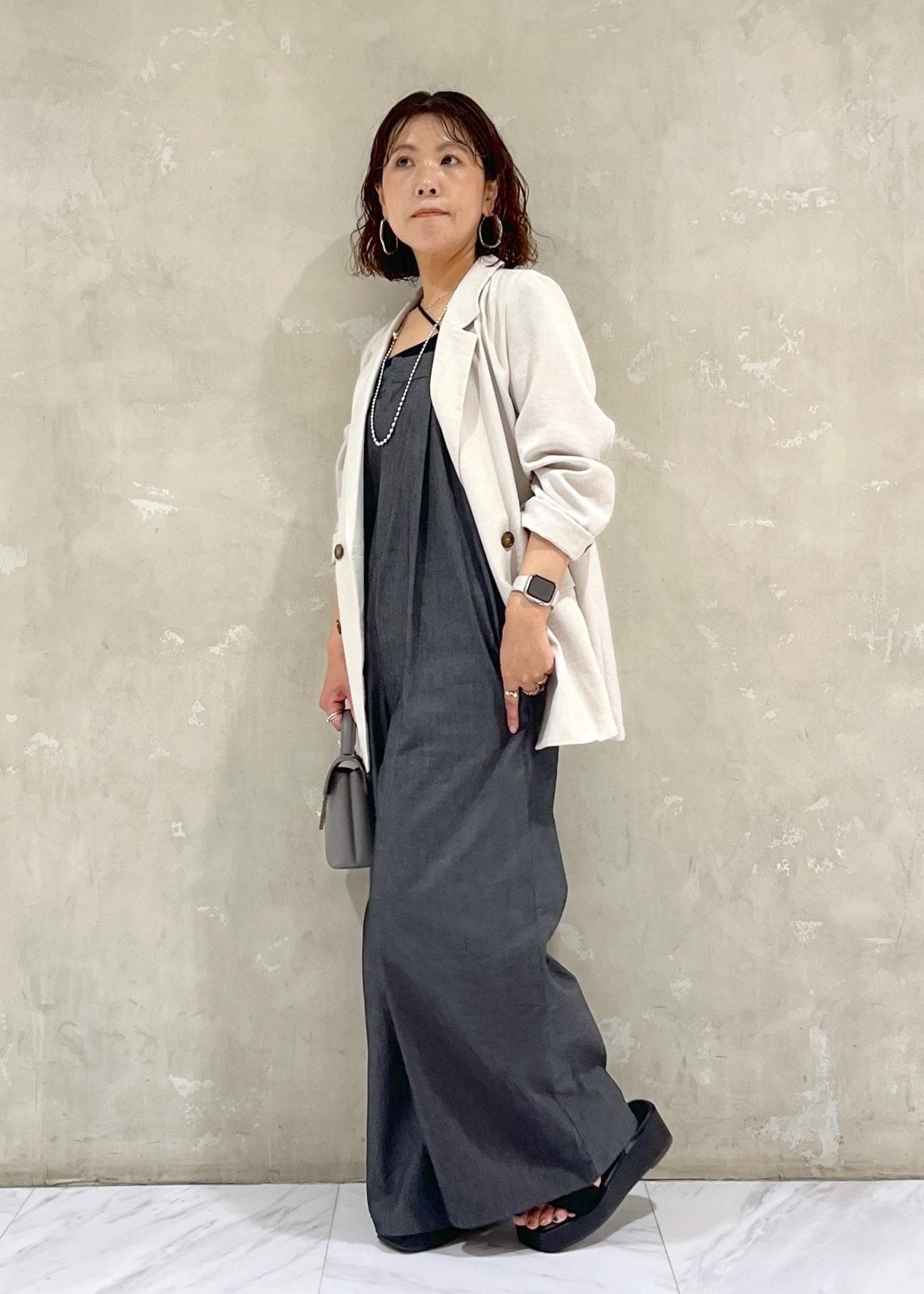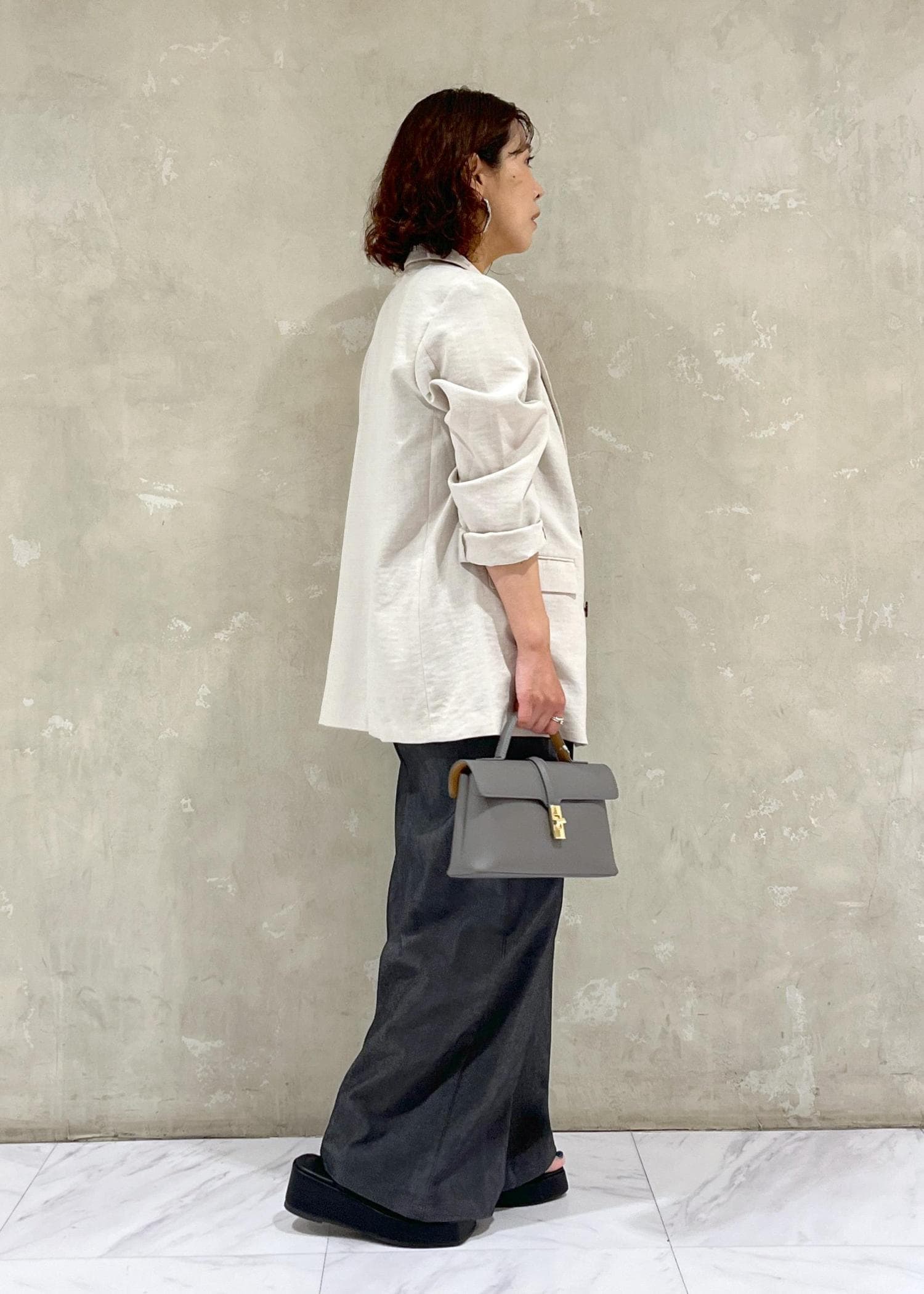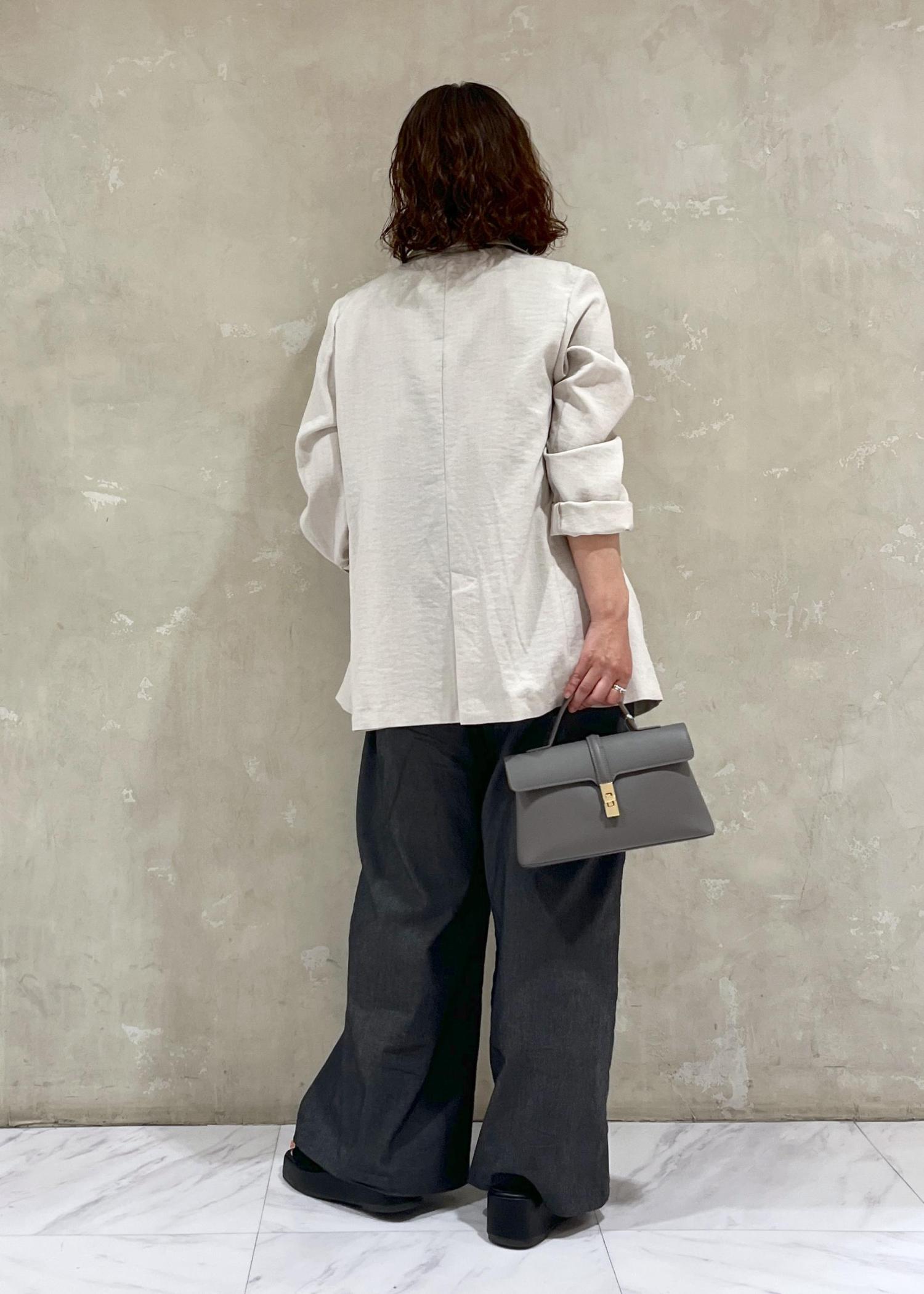 裏地もないので少しゆるっとしたサイズ感で着用できます。 -