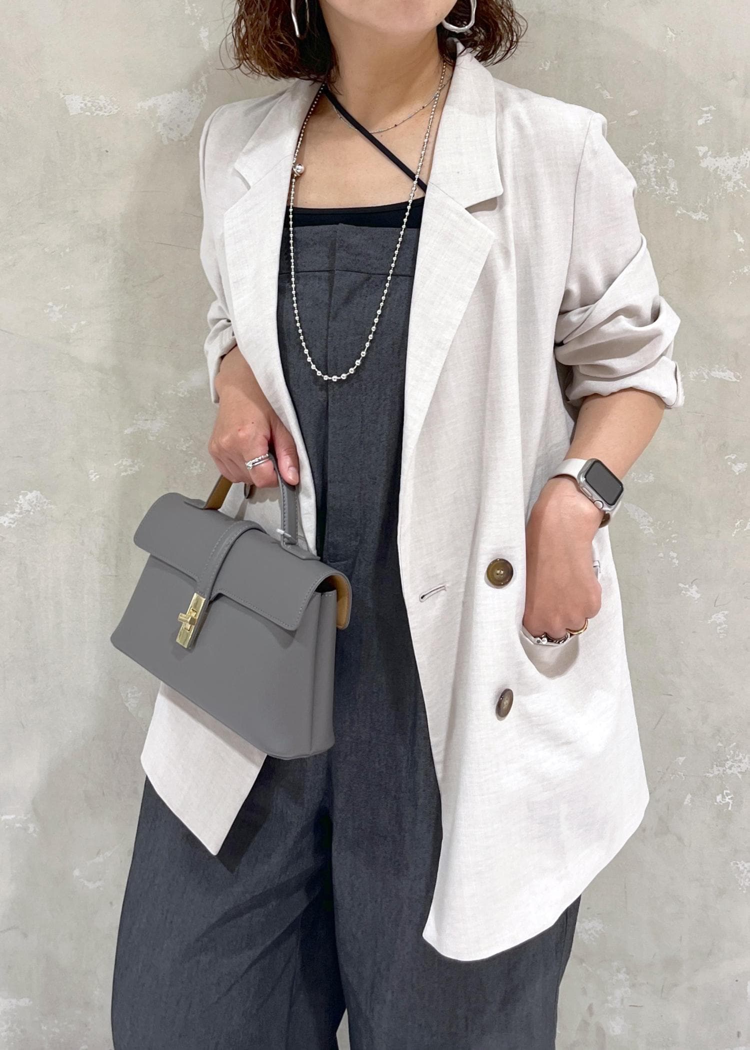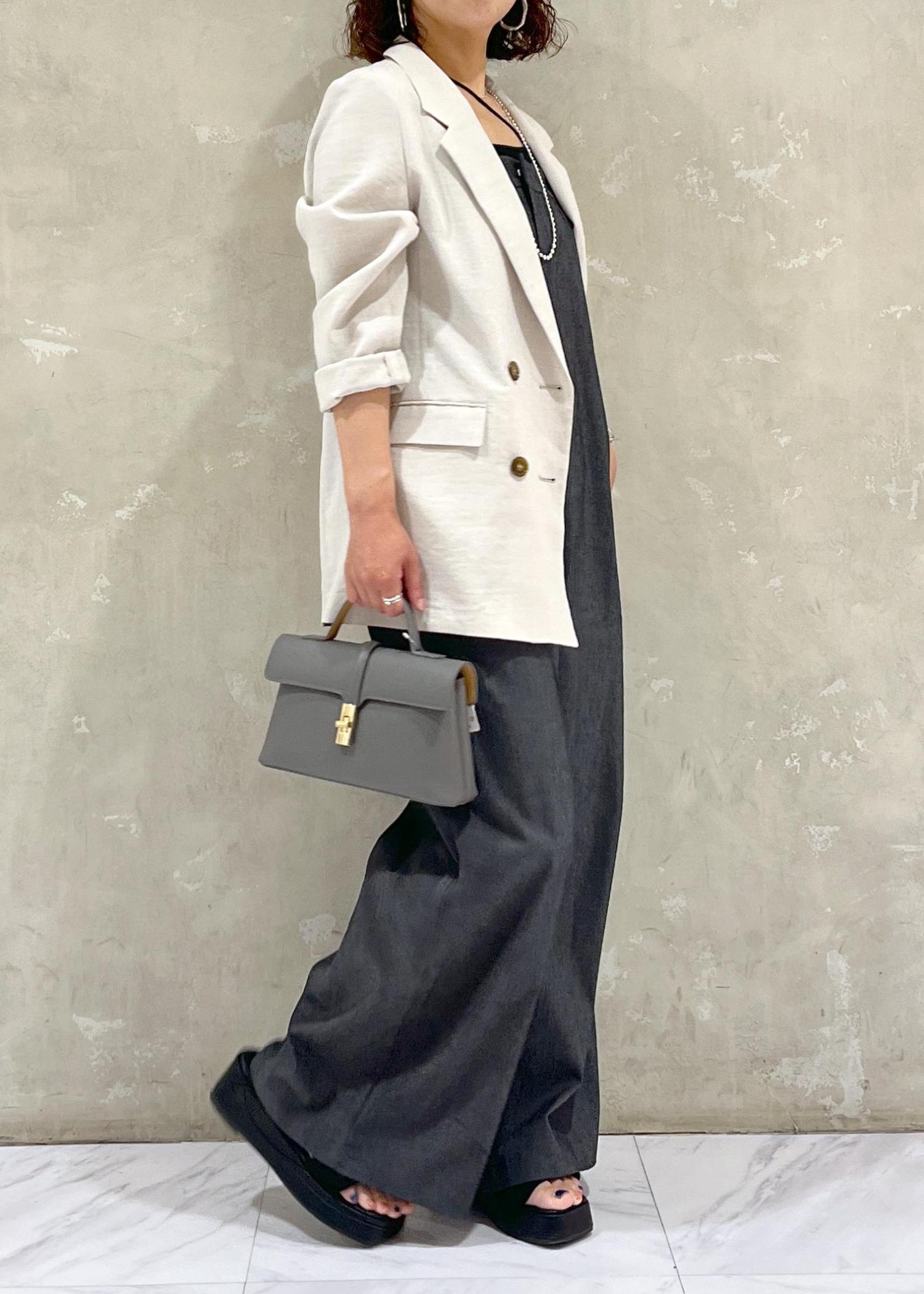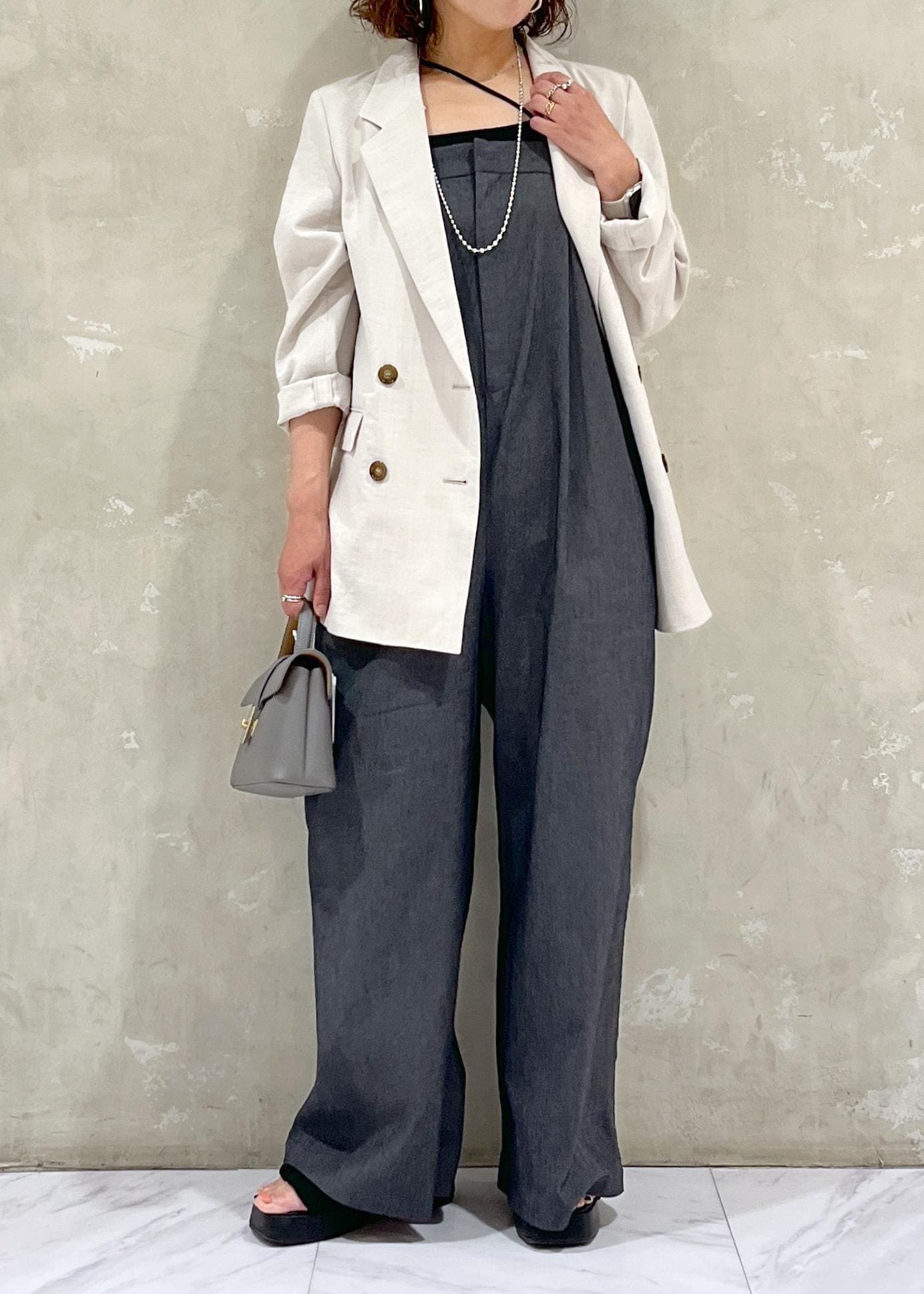 裏地もないので少しゆるっとしたサイズ感で着用できます。 -