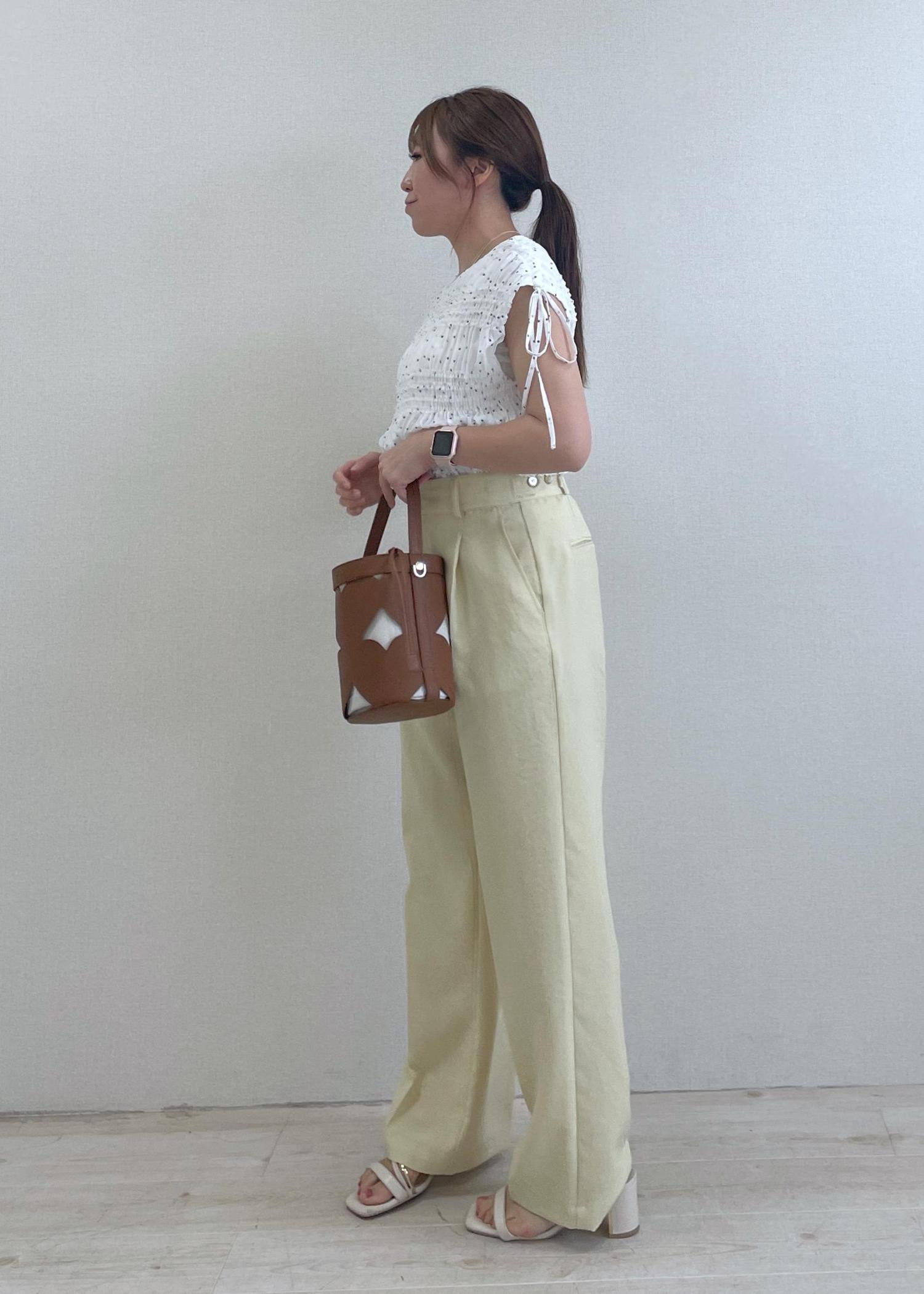 VIS【美easy】ワンタックワイドスラックスパンツ/洗えるイエロー系 / S¥5,489レビュー150cmでSサイズ着用で、丈感は足首にかかるくらいでちょうどよかったです。