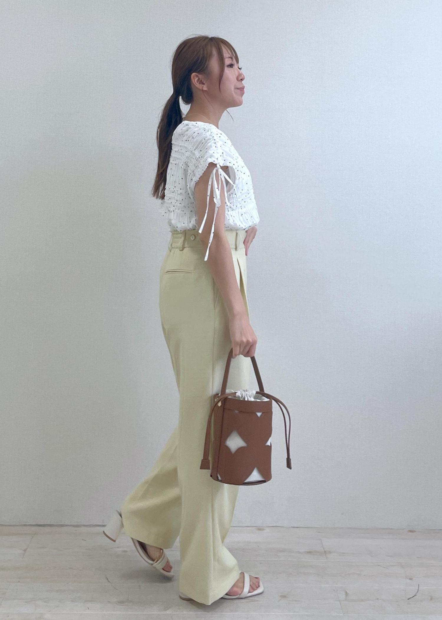 口元は巾着で中身が見えにくく、夏のお出かけにぴったりなバッグです。 -