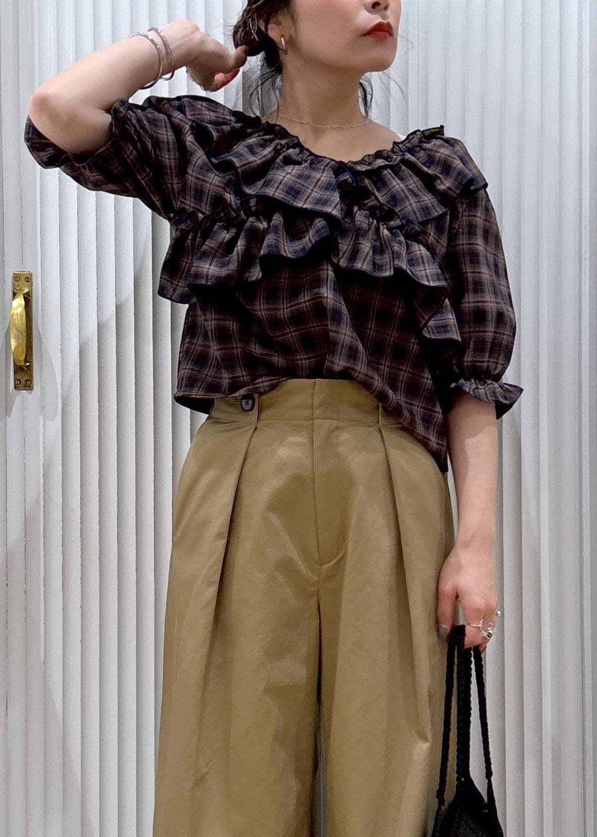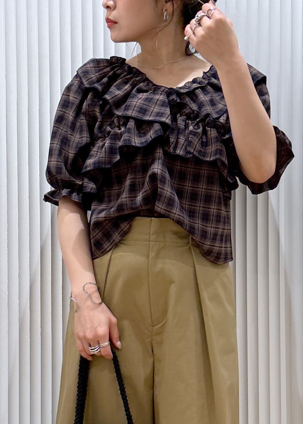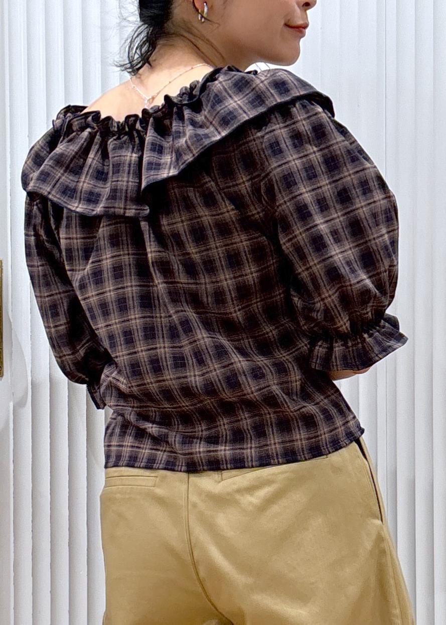 入荷するとすぐ完売してしまうフリルチェックブラウス。