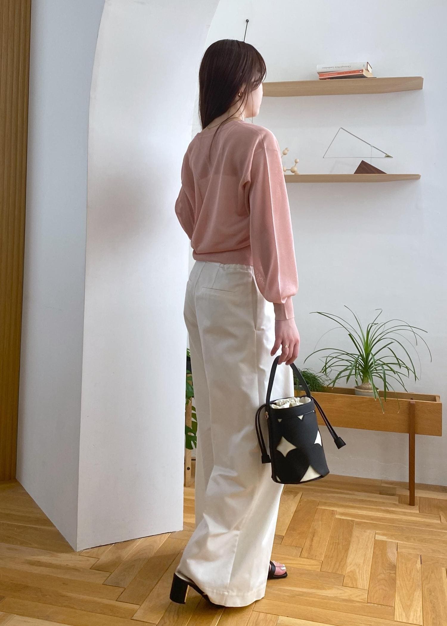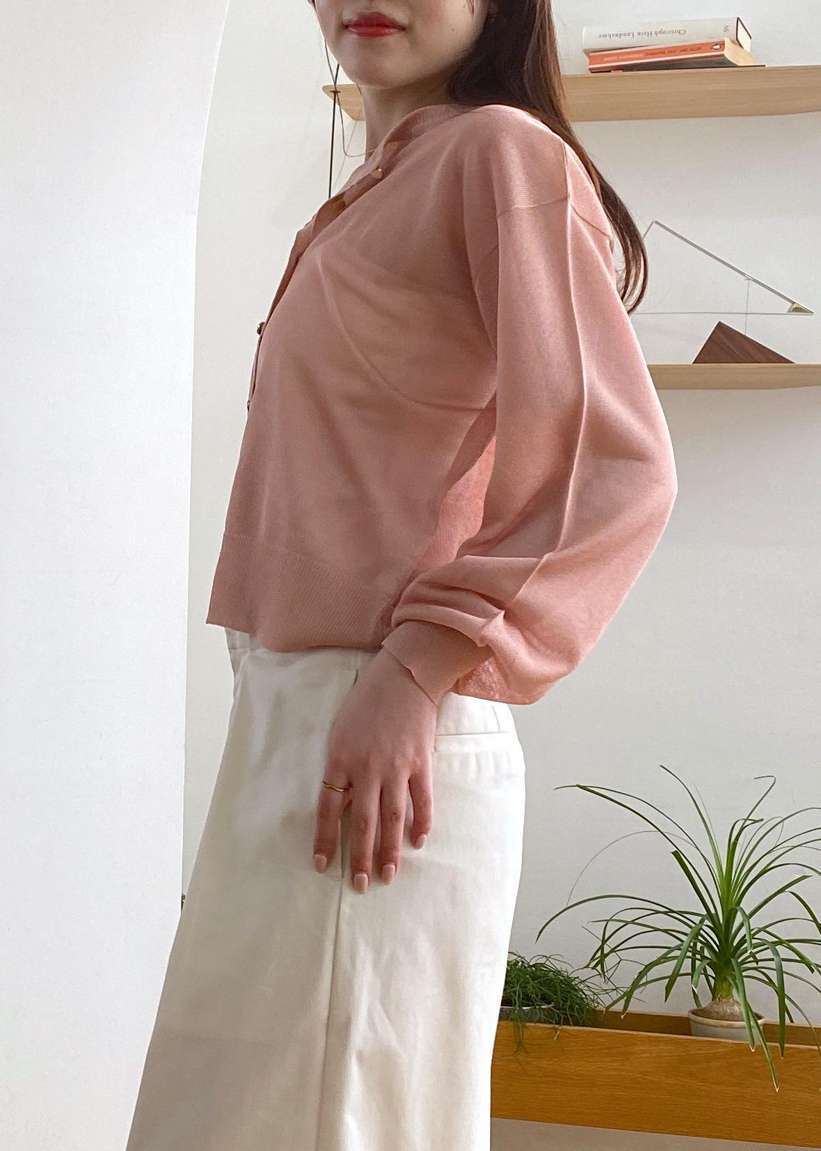 お袖のボリューム感とゆとりがあるので、インナー問わず羽織りやすいシアーカーディガンです! -