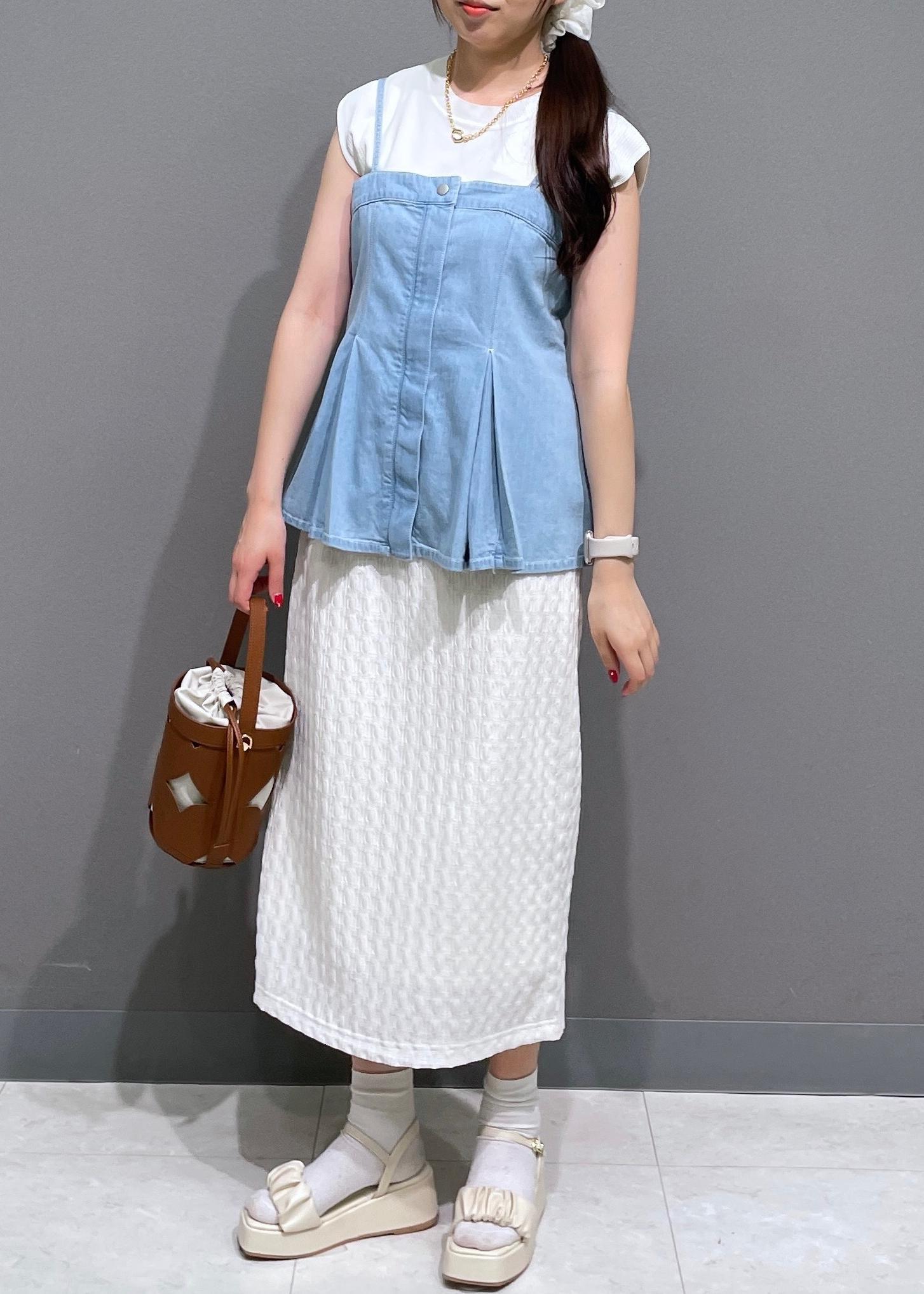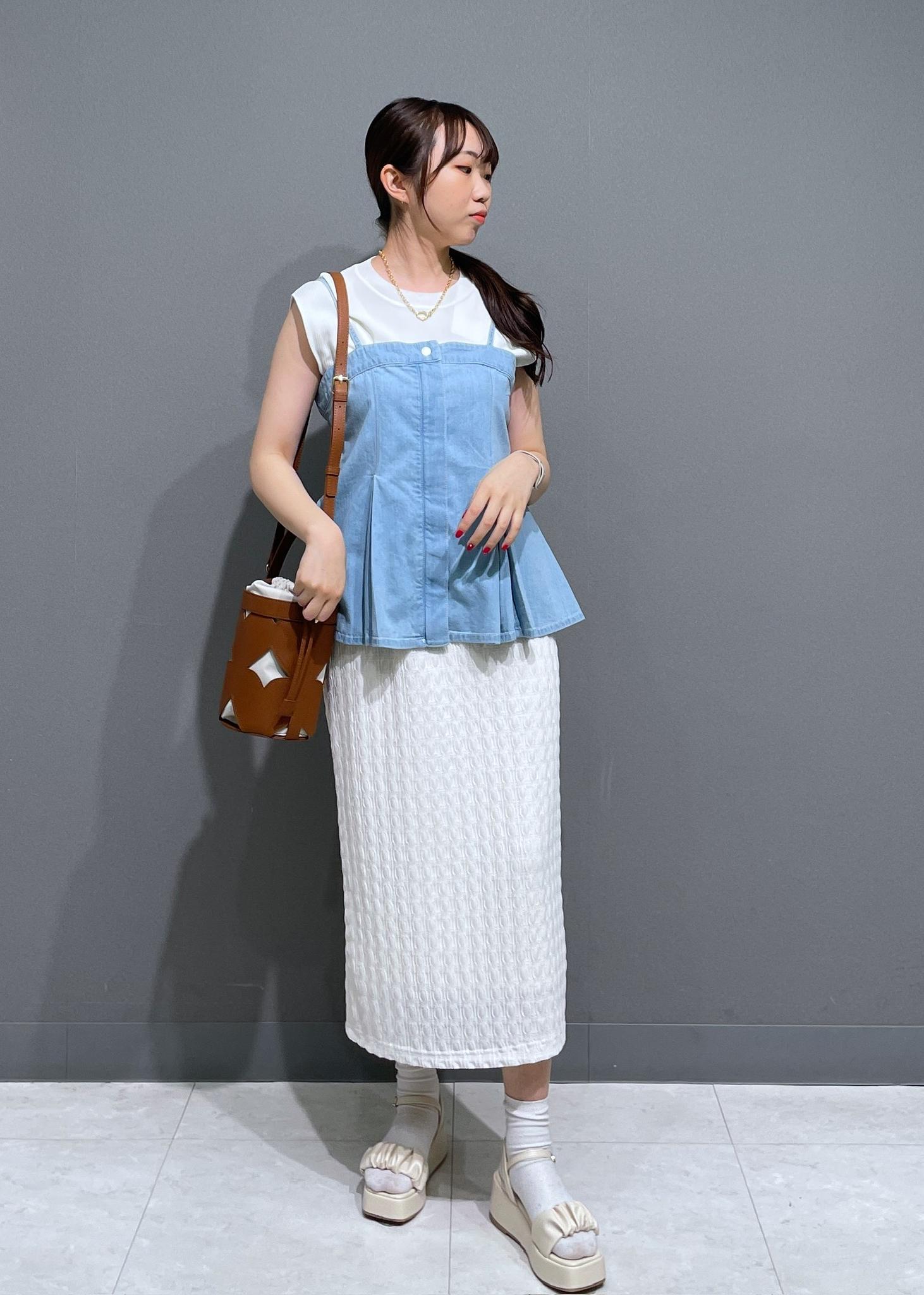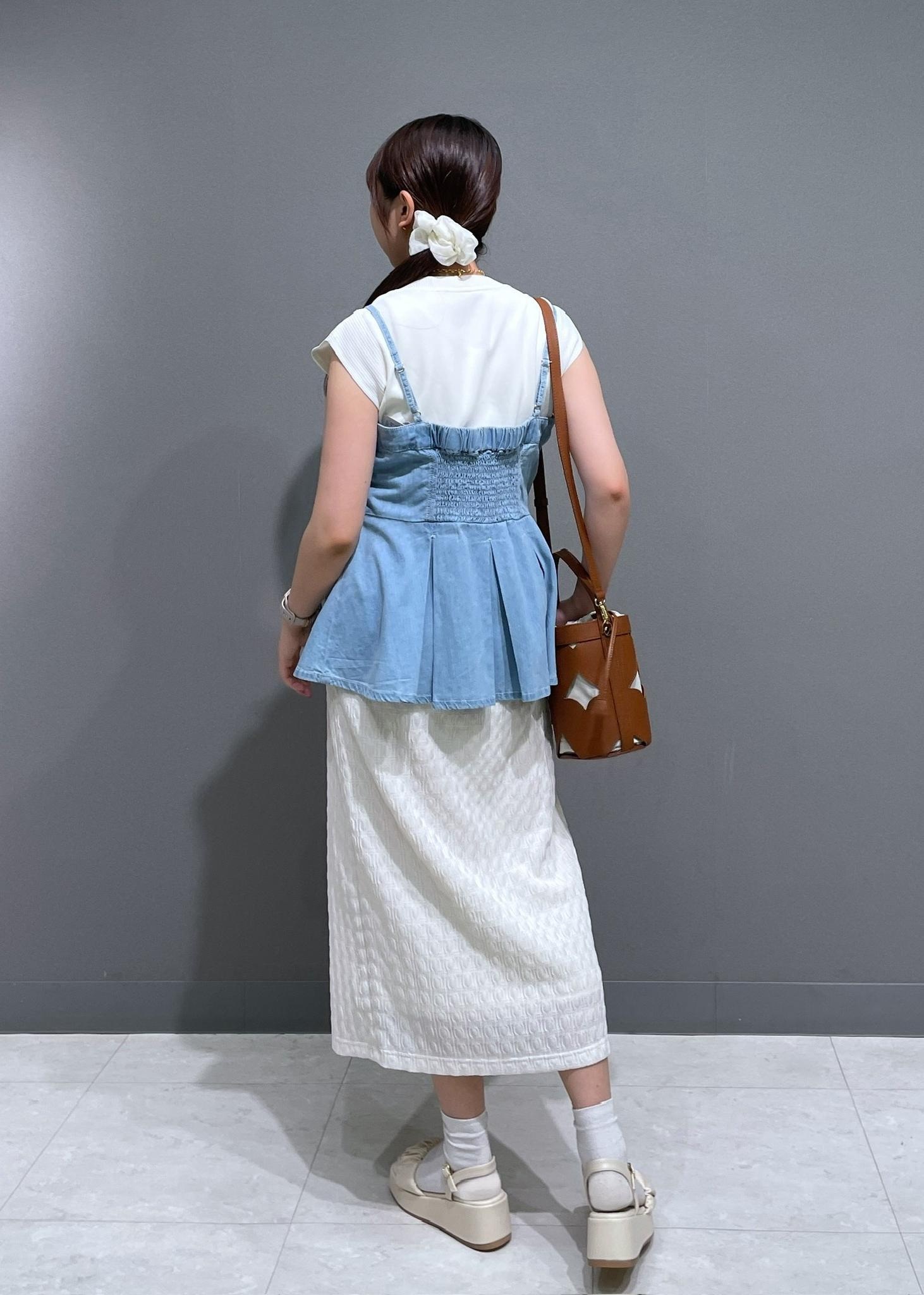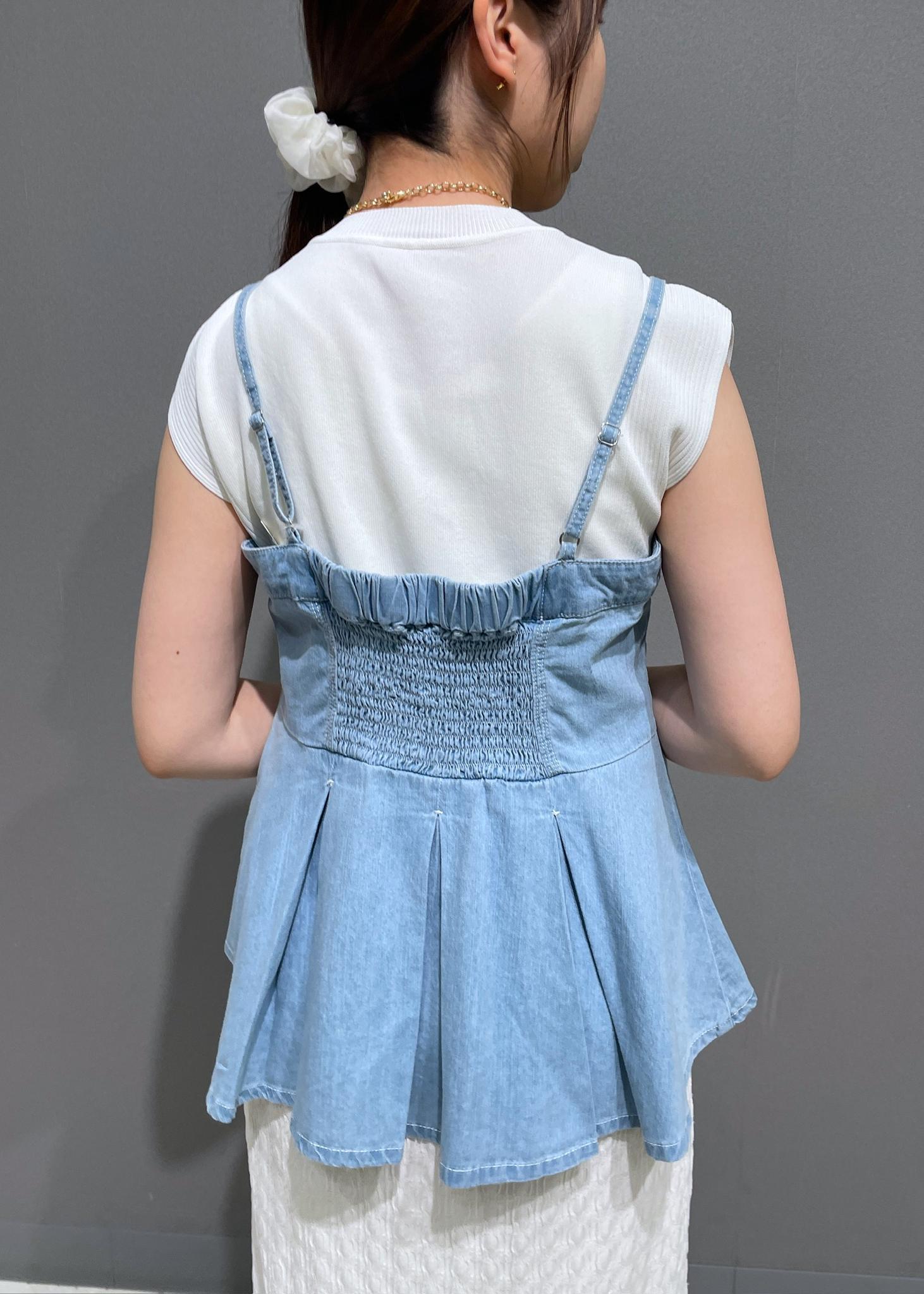アウトレットVISライトオンスデニムビスチェサックス / F¥2,372レビュー腰周りが隠れてスタイルアップ効果のあるデニムビスチェです☺︎