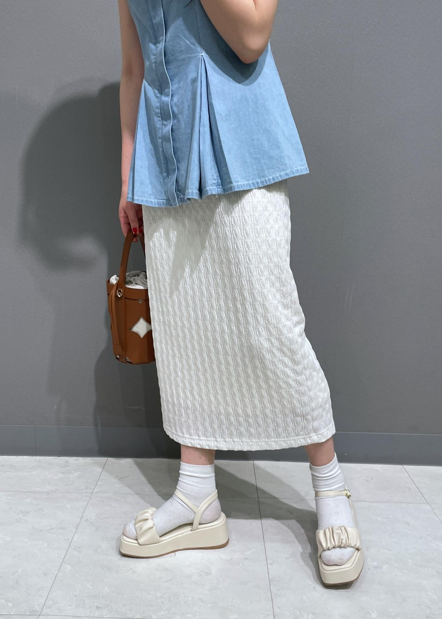 アウトレットVIS【新色追加】【接触冷感】膨れジャガードナロースカートオフホワイト / F¥3,293レビュージャガードの生地感がとてもかわいいスカートです♪