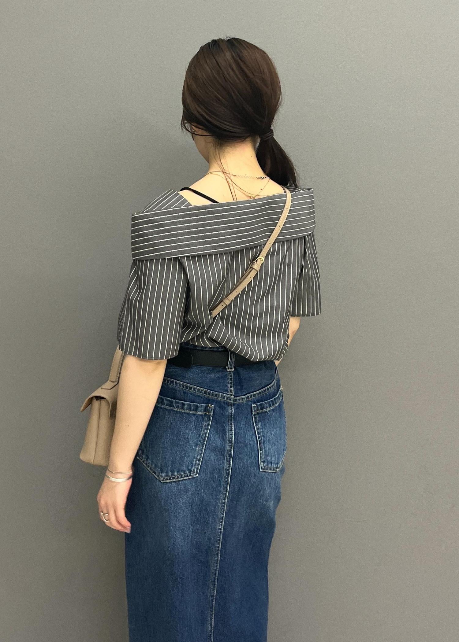紐部分がアシンメトリーなデザインになるので、デコルテ周りがあいているトップスを着ても可愛いなと思いました☺︎ -